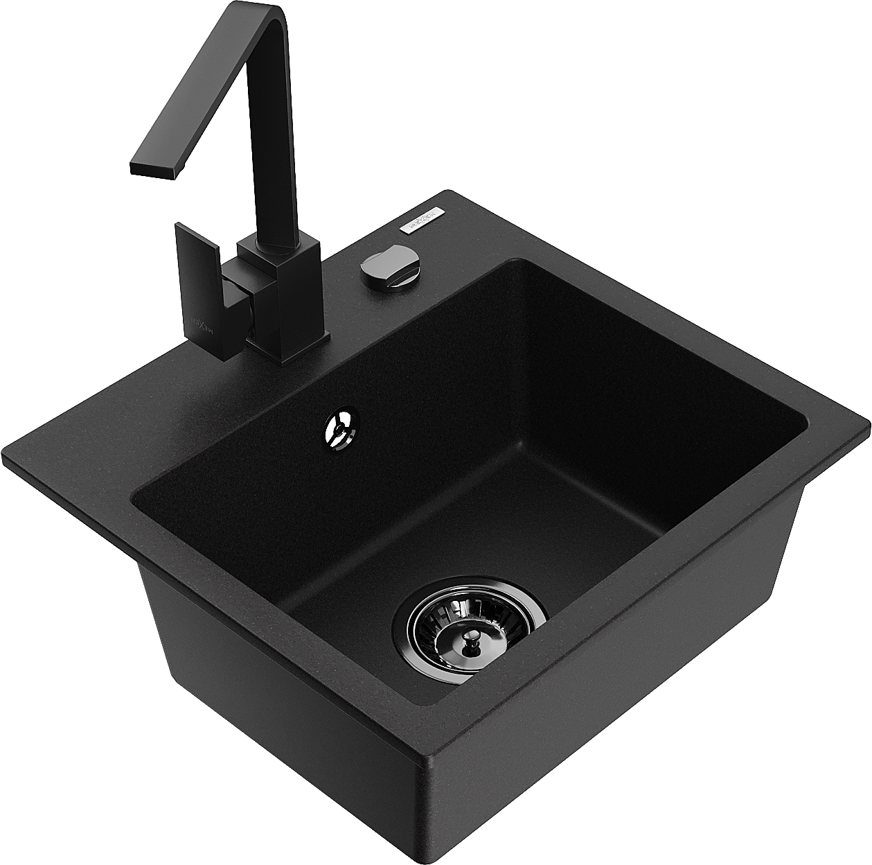Mexen Milo évier en granit 1 bac avec robinet de cuisine Rita, noir - 6505-77-670300-70-B