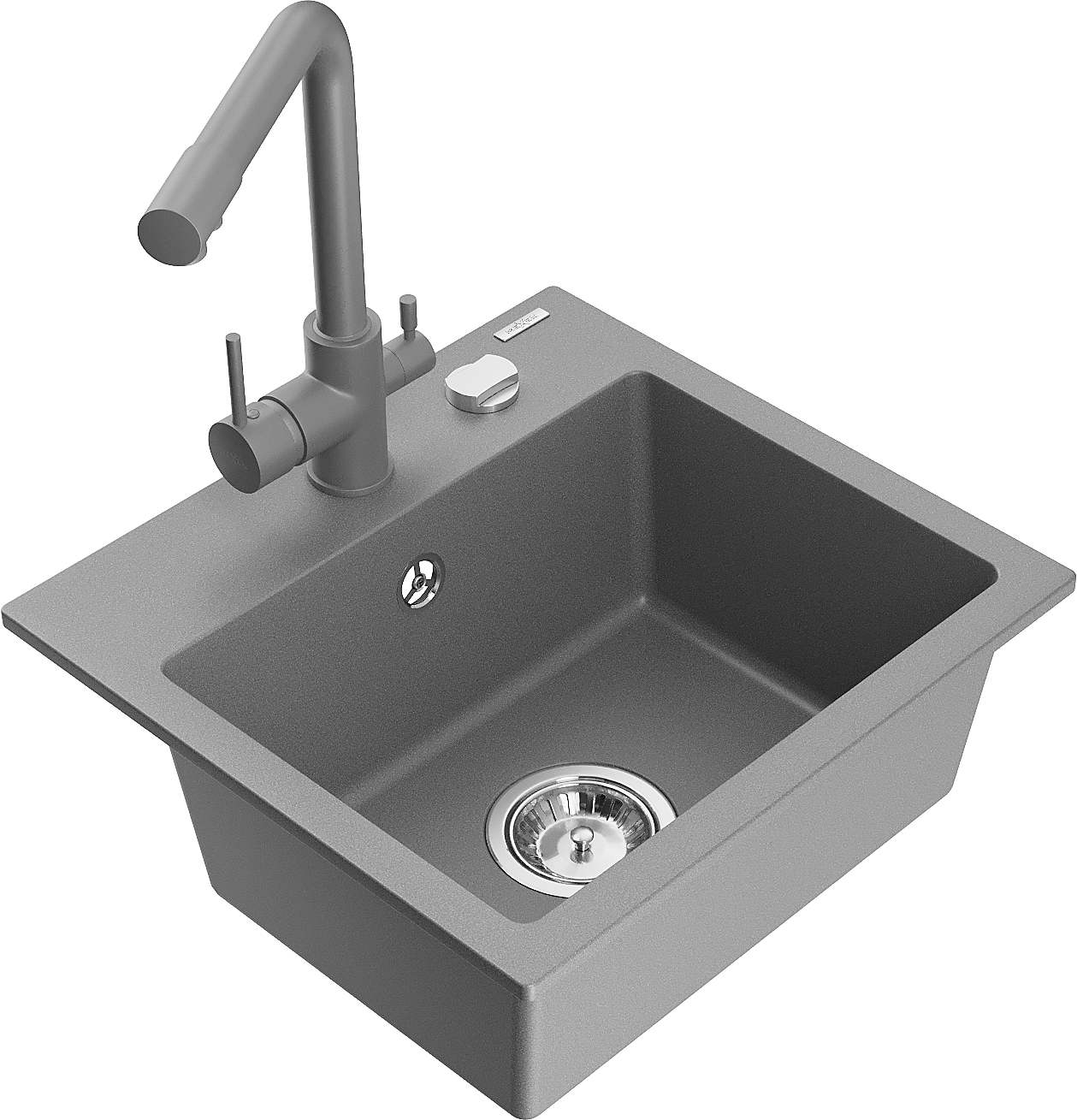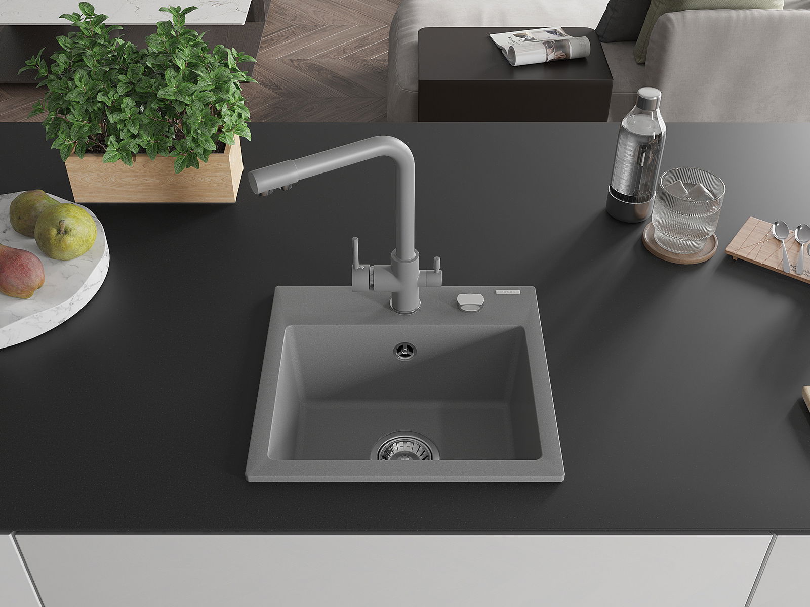 Mexen Milo évier en granit 1 bac avec robinet de cuisine Duero, gris - 6505-71-671600-71