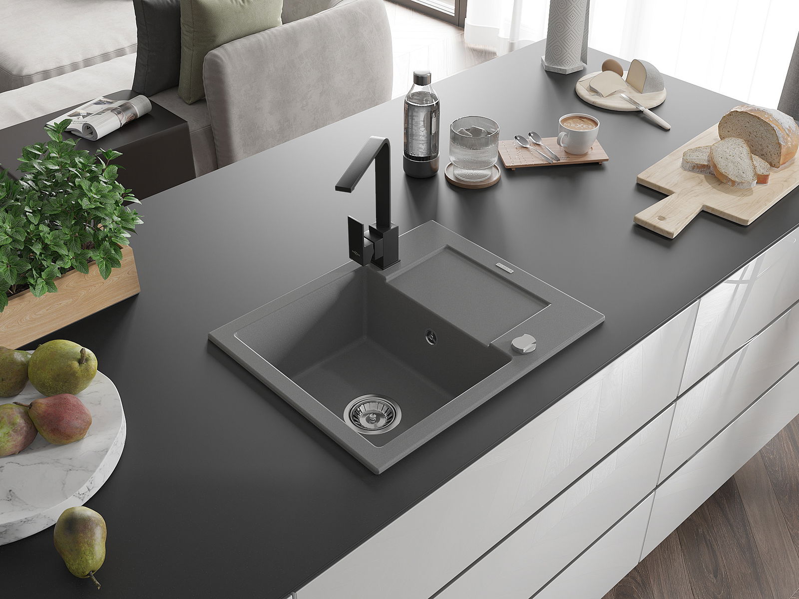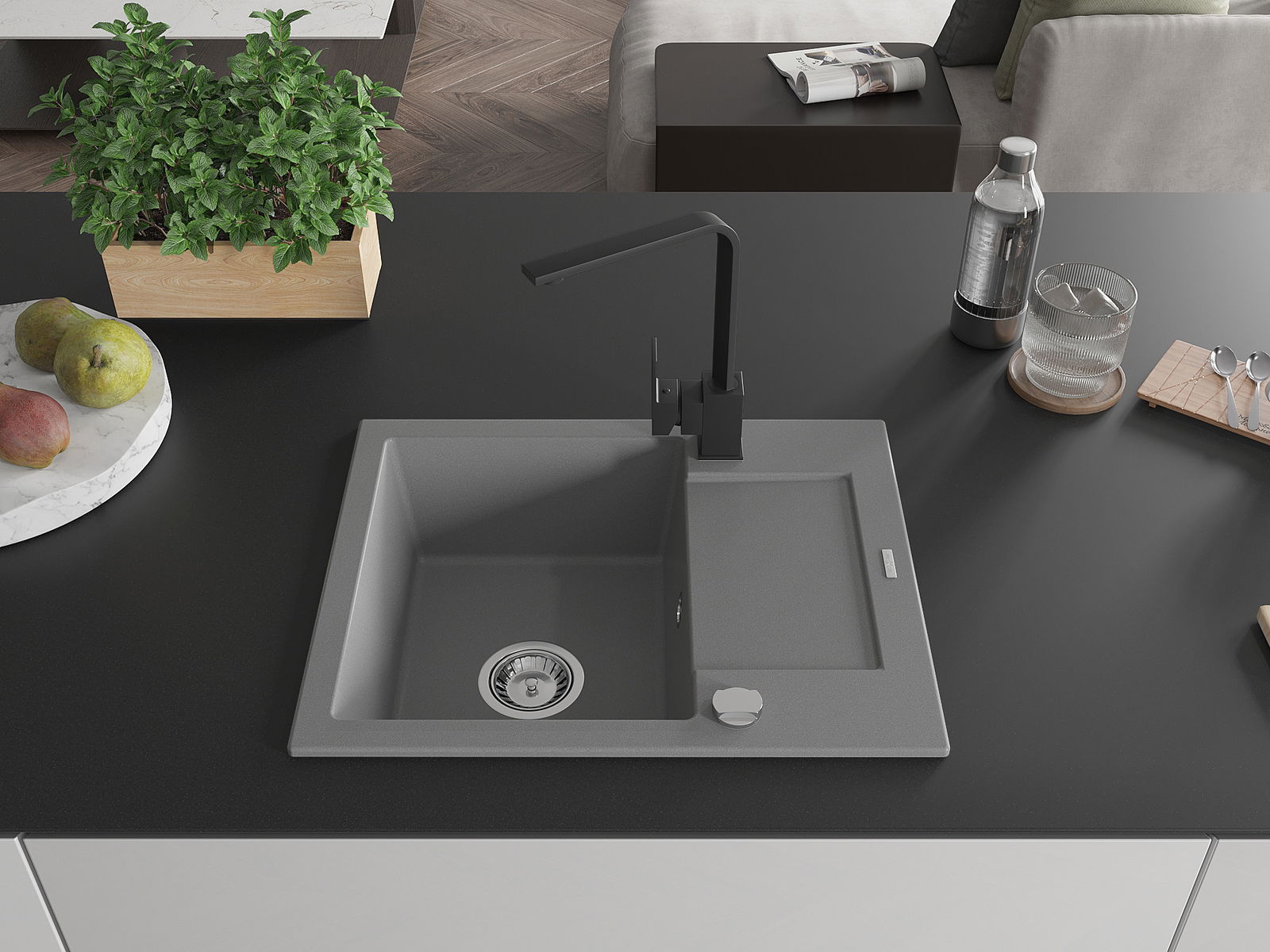 L'évier est fabriqué en granit de haute qualité. Il constitue un complément élégant et surtout pratique pour toute cuisine, quel que soit son style. La qualité et la durabilité du granit garantissent de nombreuses années d'utilisation.