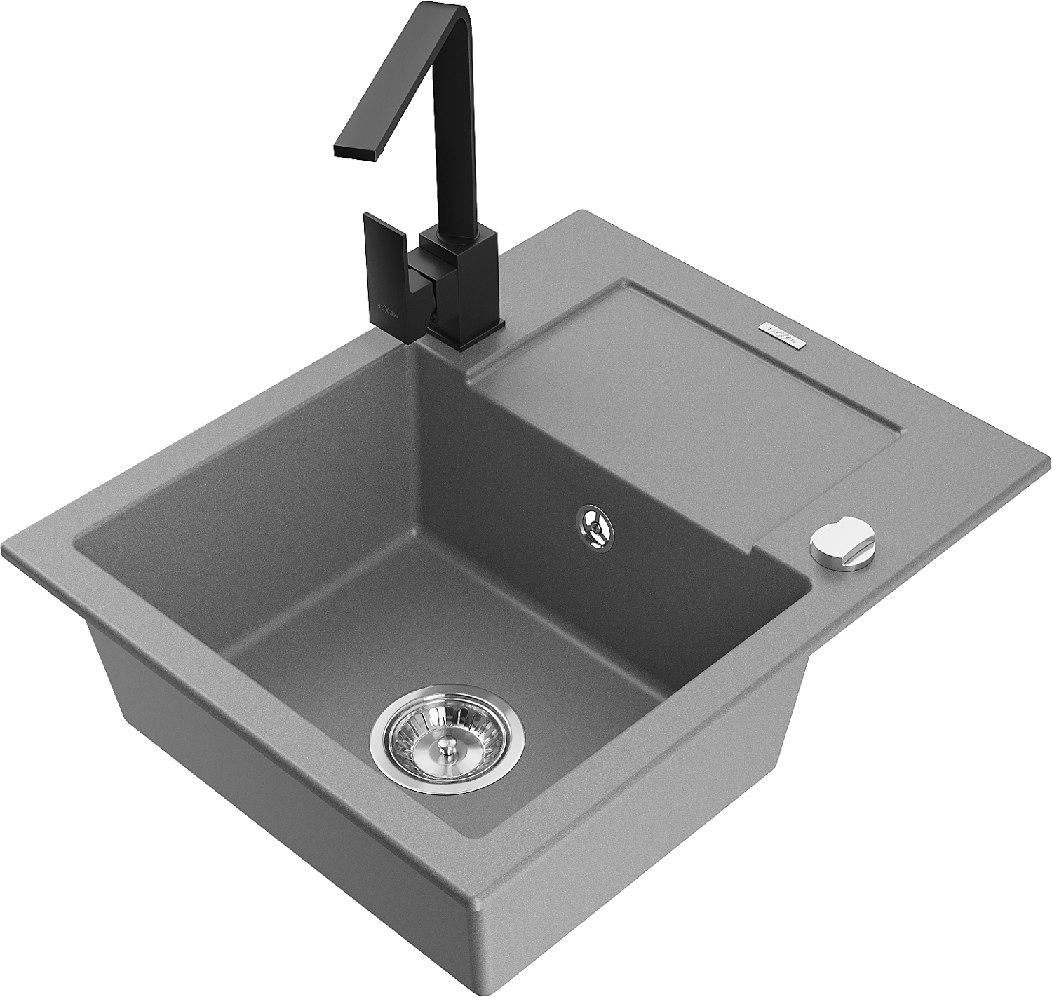 Mexen Enzo évier de cuisine en granit 1 bac avec égouttoir et robinet de cuisine Rita, gris - 6506-71-670300-70