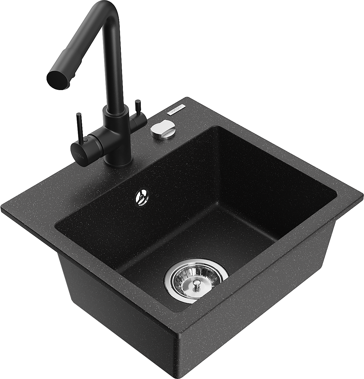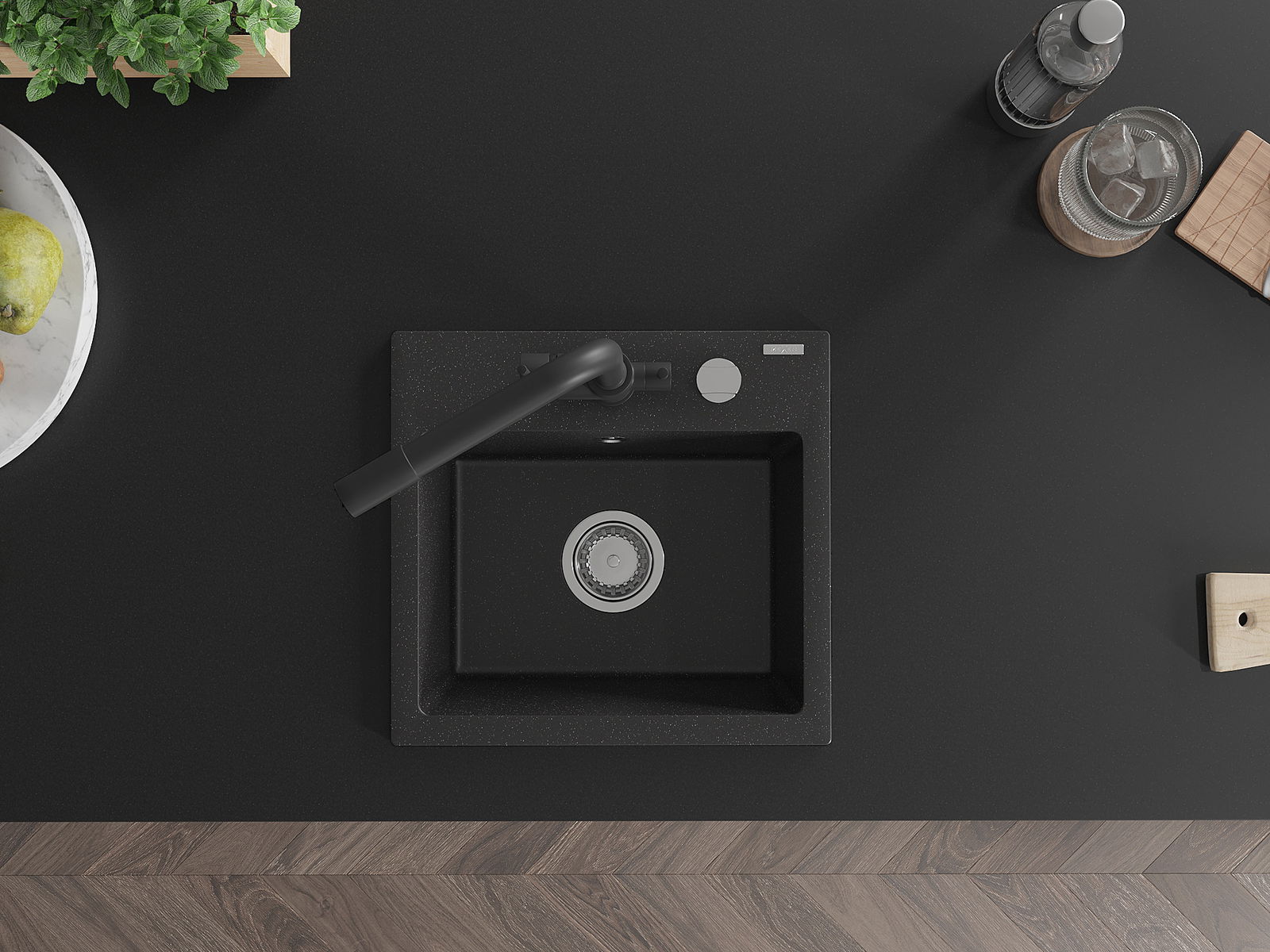 Mexen Milo évier de cuisine en granit 1 bac avec robinet de cuisine Duero, noir/argent métallisé - 6505-73-671600-70