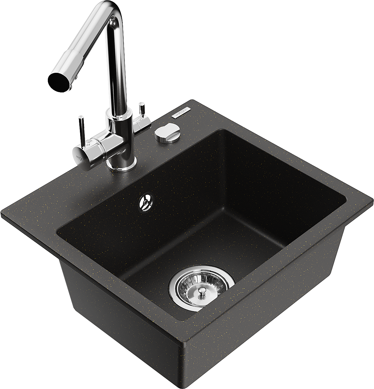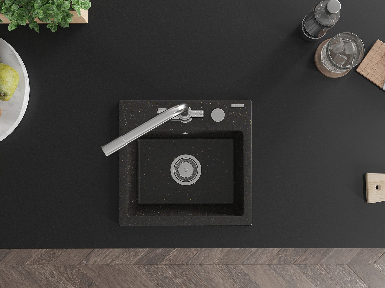 Mexen Milo évier en granit à 1 bac avec robinet de cuisine Duero, noir/or métallisé - 6505-75-671600-00