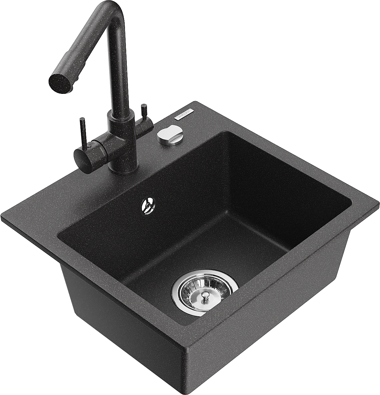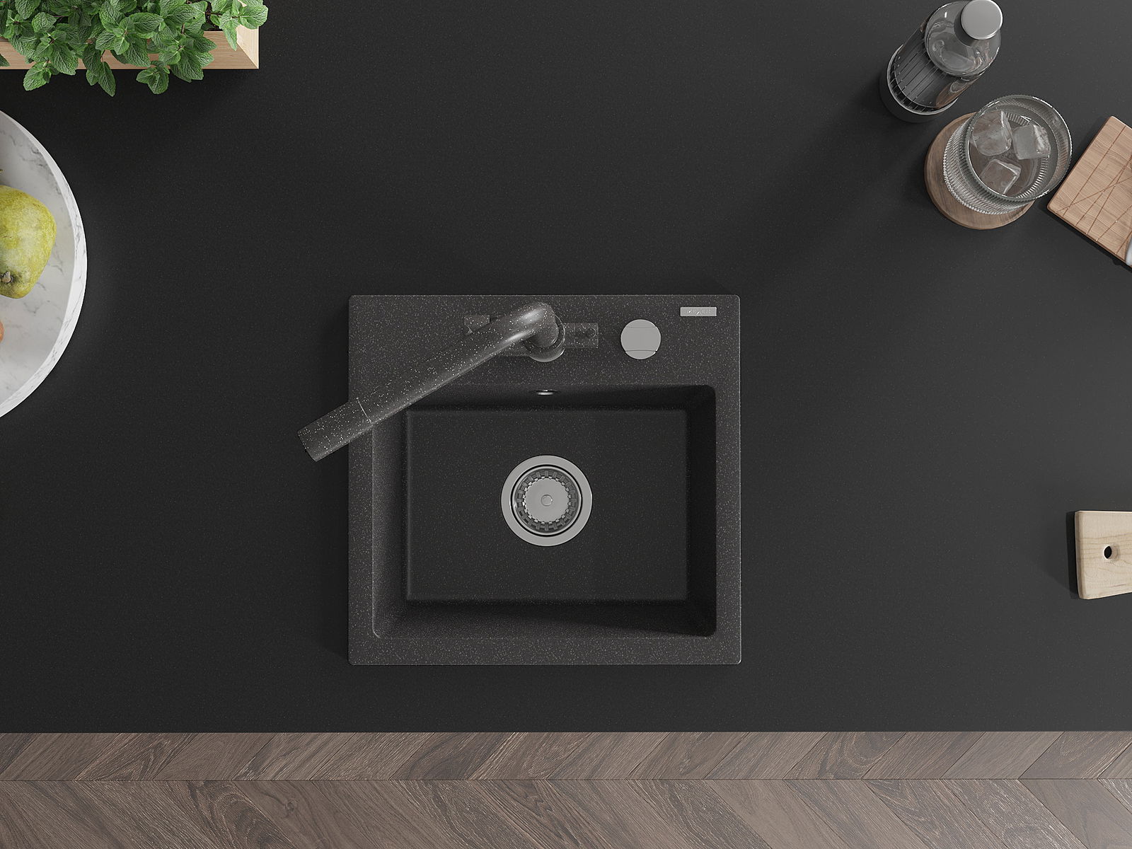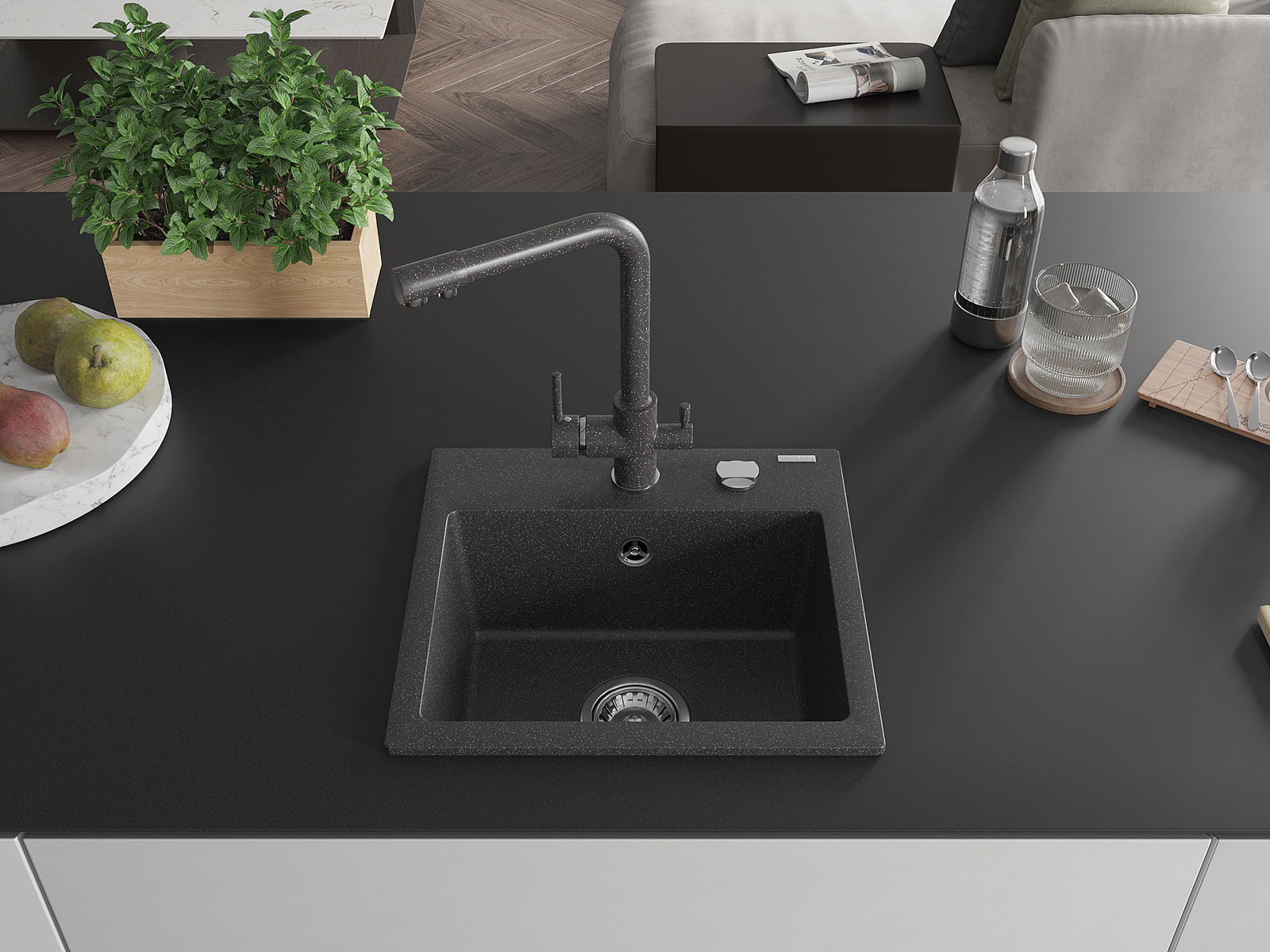 Mexen Milo évier en granit 1 bac avec robinet de cuisine Duero, noir moucheté - 6505-76-671600-76