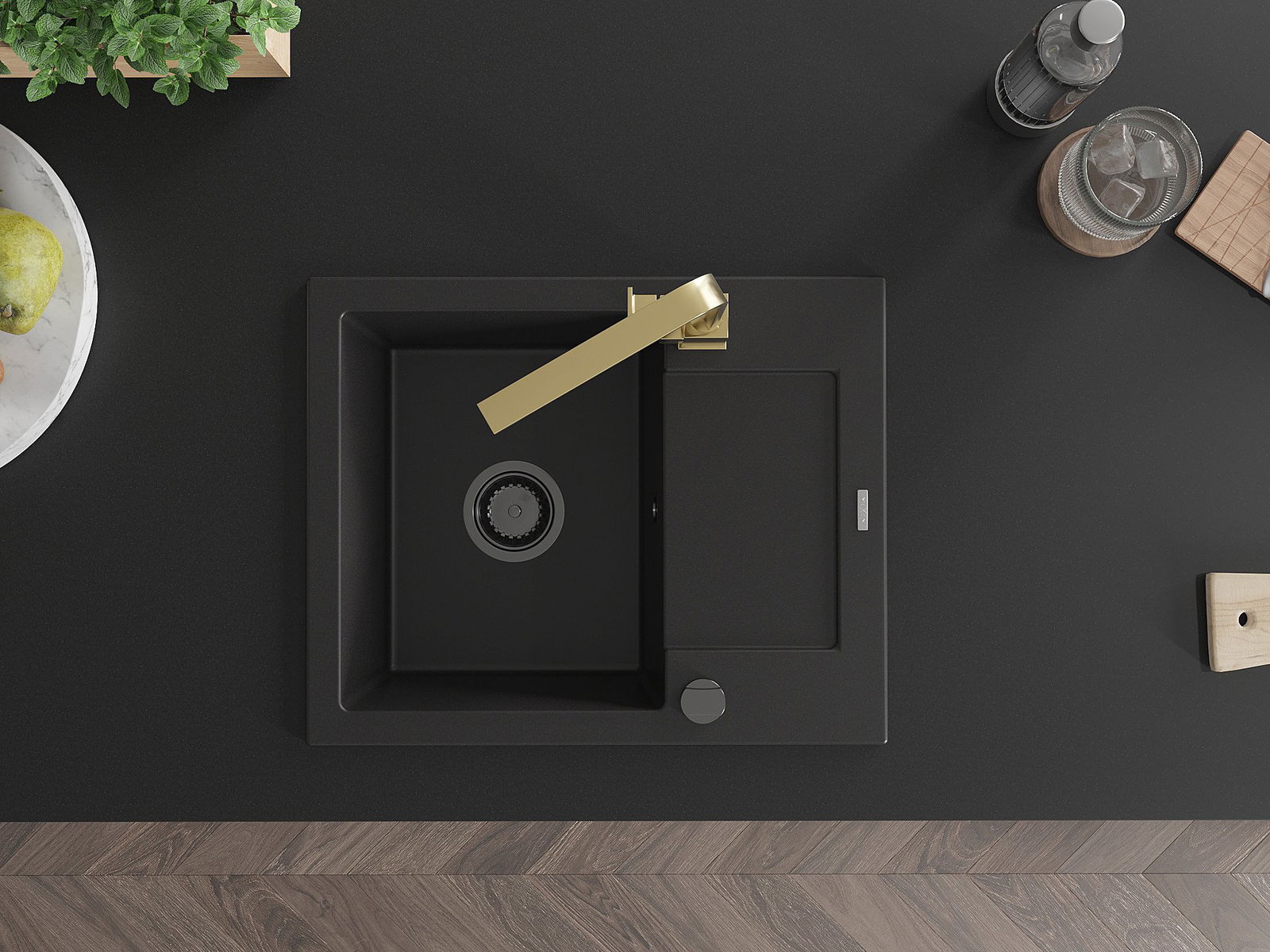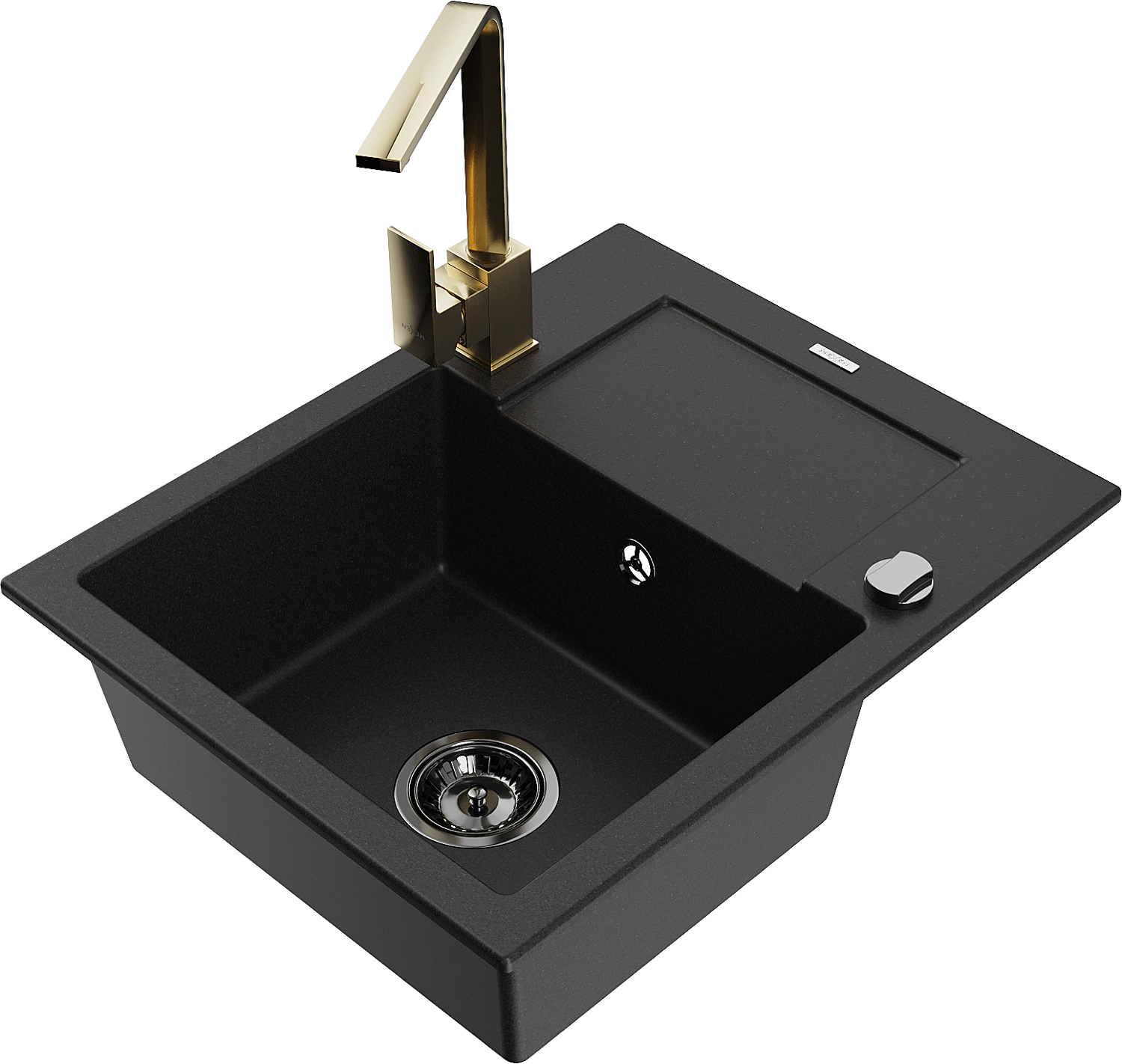 Mexen Enzo évier de cuisine en granit 1 bac avec égouttoir et robinet de cuisine Rita, noir - 6506-77-670300-50-B