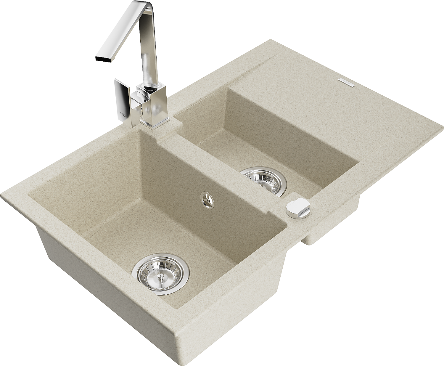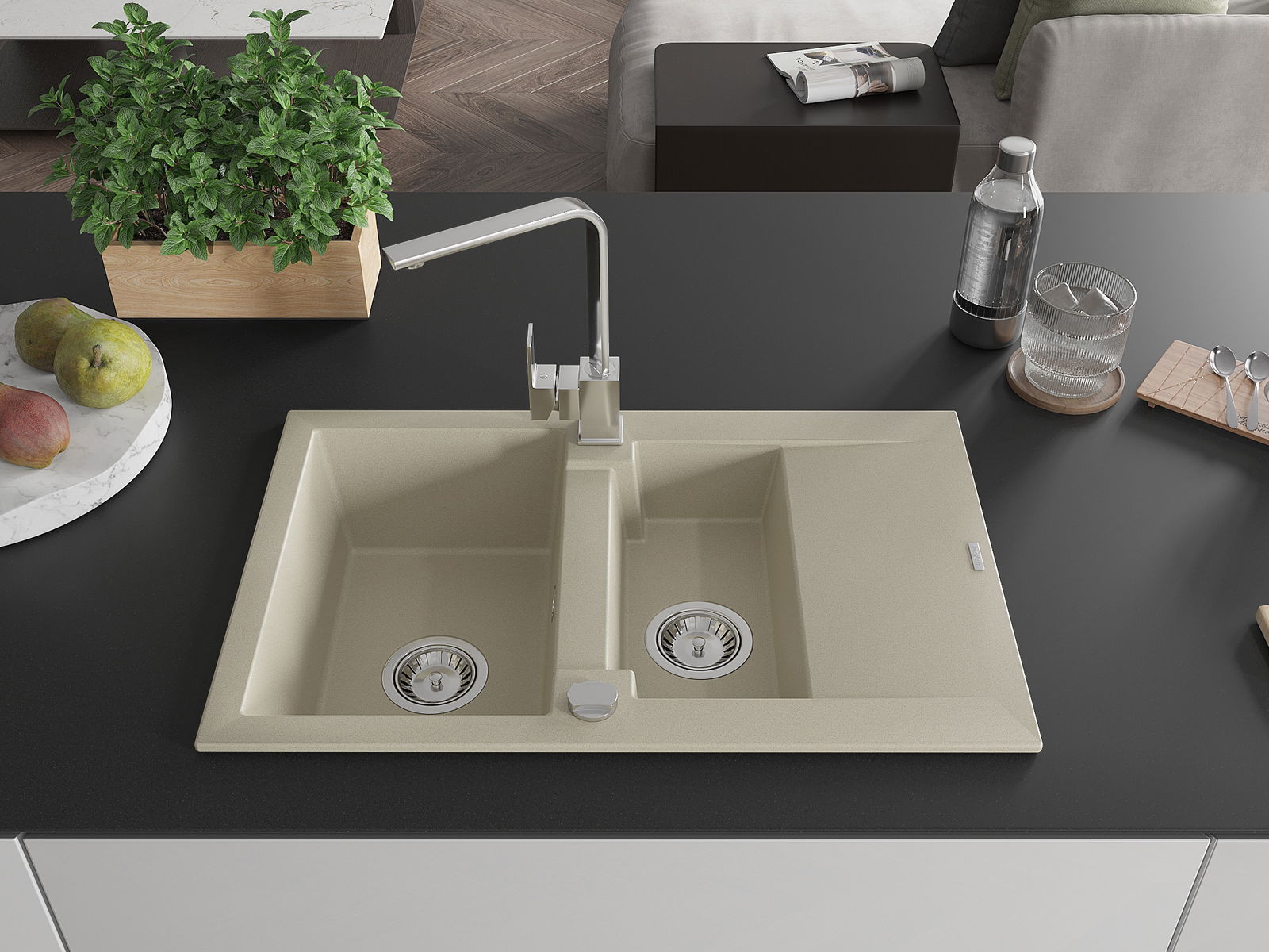 Mexen Gaspar évier en granit 1,5 bac avec égouttoir et robinet de cuisine Rita, beige - 6507-69-670300-00
