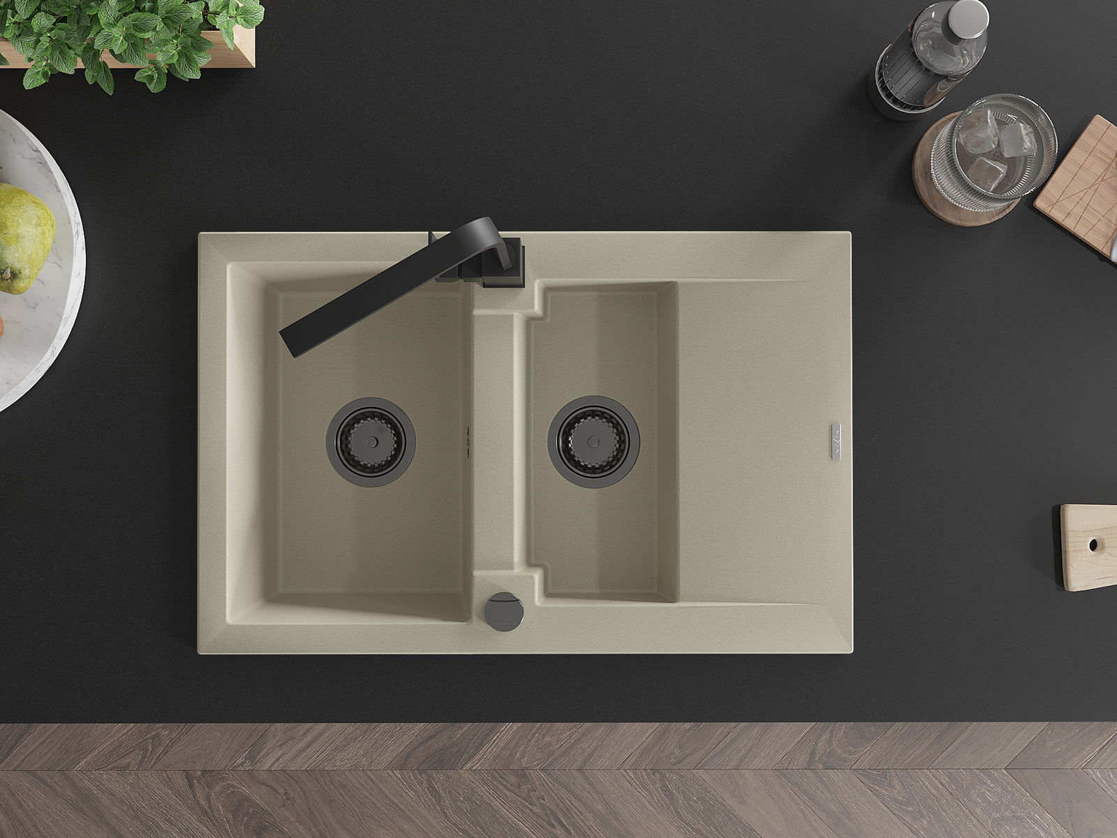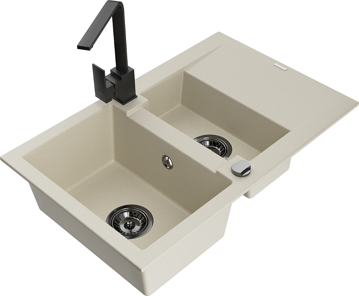Mexen Gaspar évier en granit 1,5 bacs avec égouttoir et robinet de cuisine Rita, beige - 6507-69-670300-70