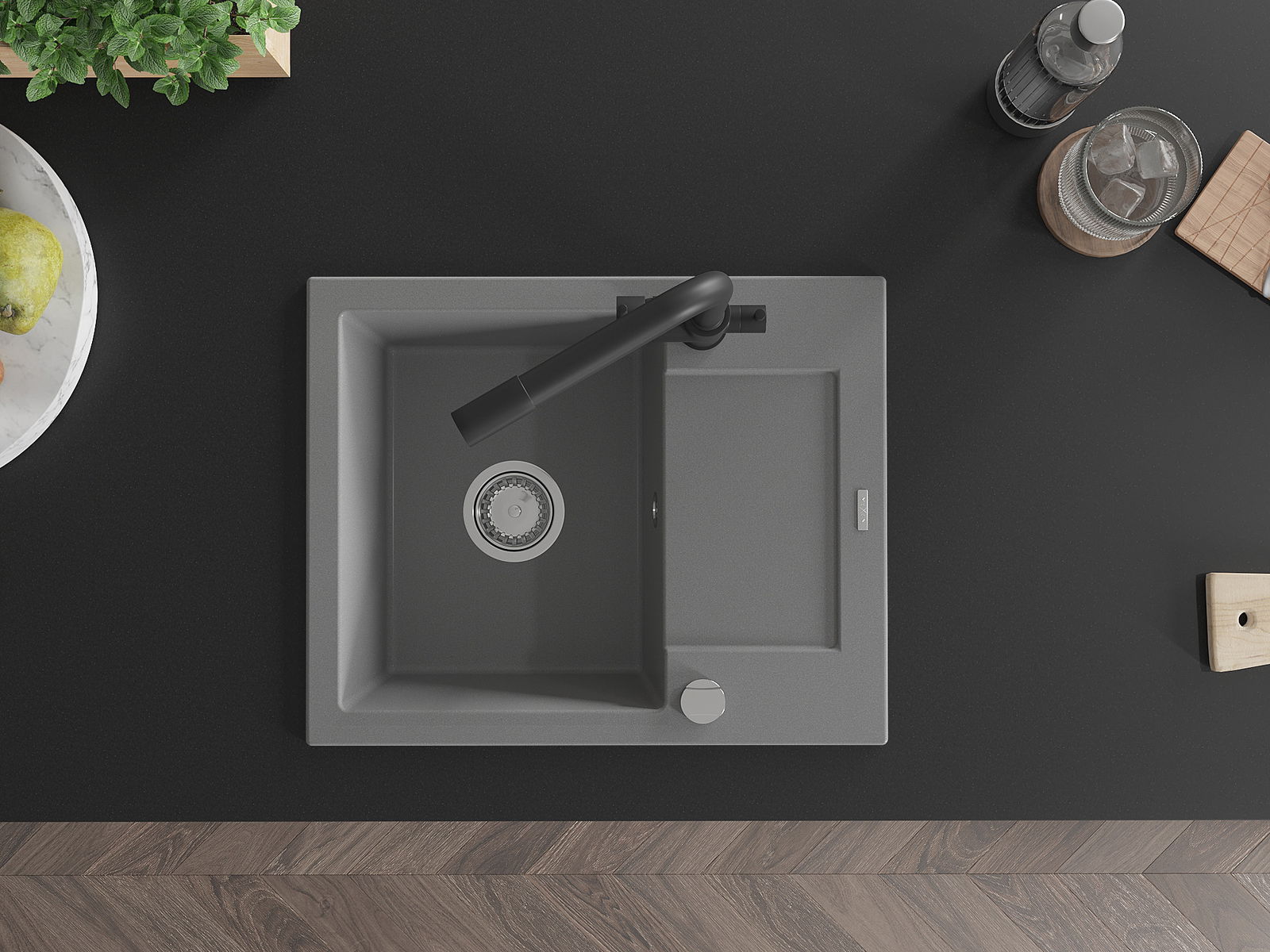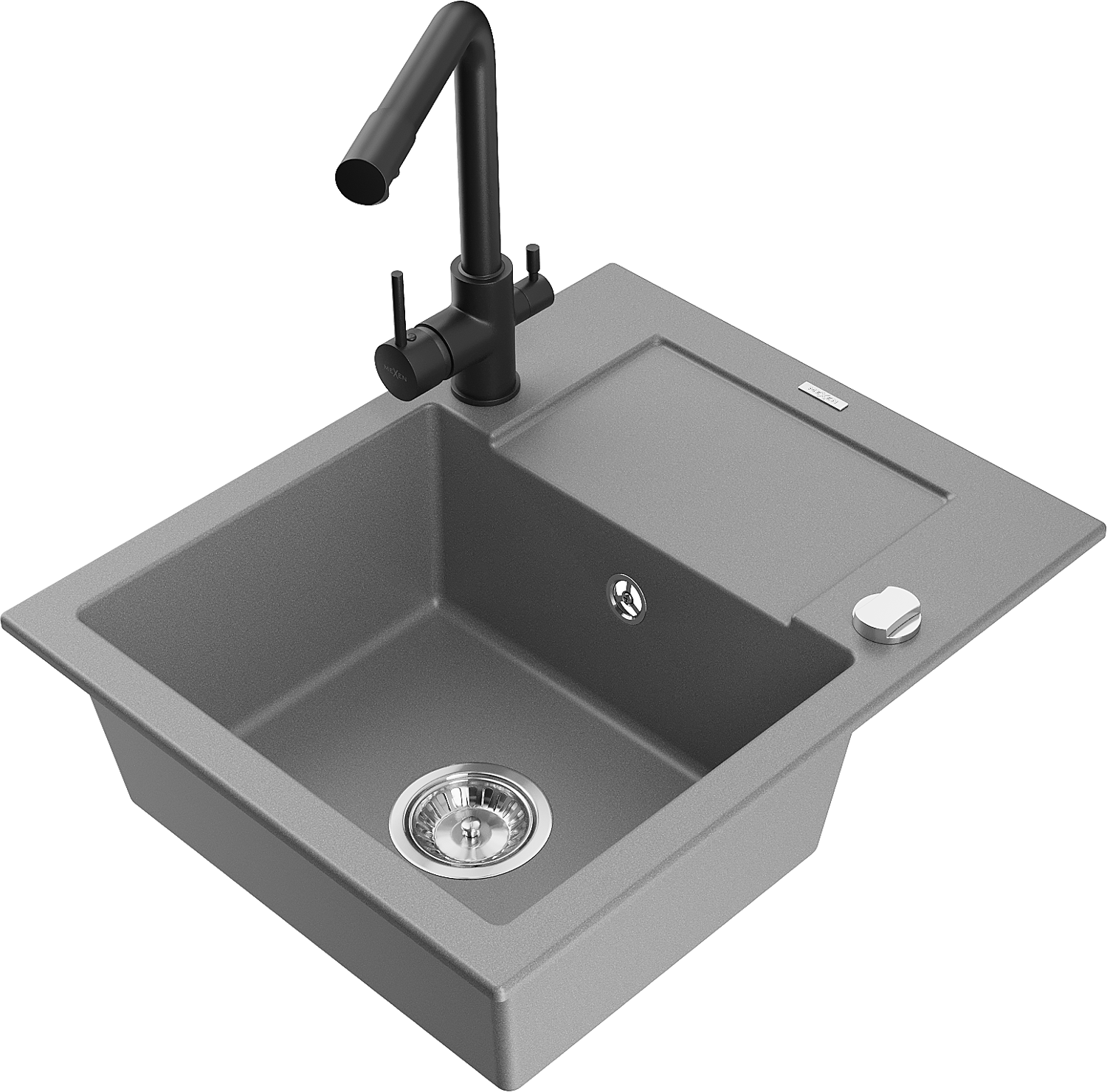Mexen Enzo évier de cuisine en granit 1 bac avec égouttoir et robinet Duero, gris - 6506-71-671600-70