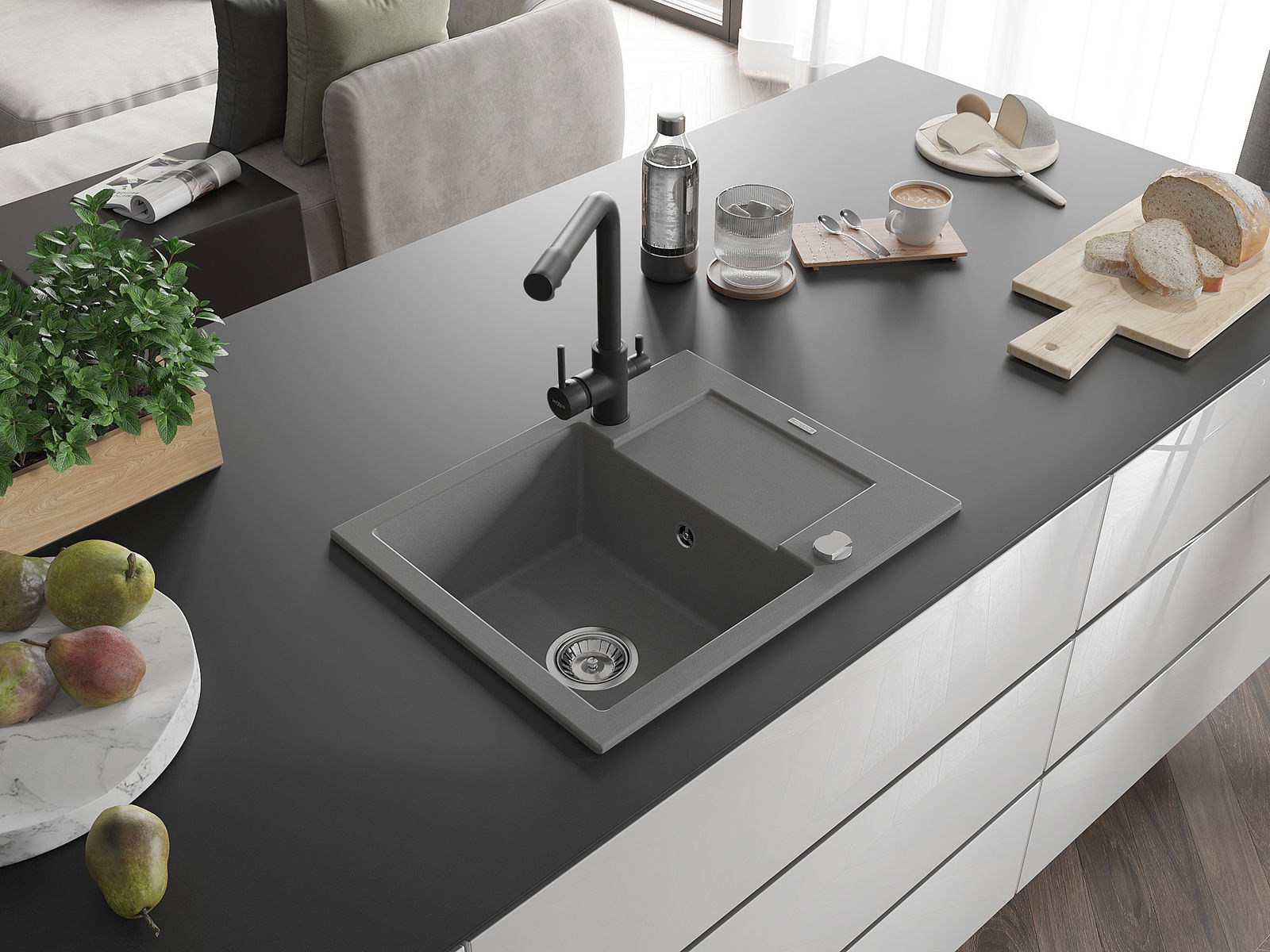 L'évier est fabriqué en granit de haute qualité. Il constitue un complément élégant et surtout pratique pour toute cuisine, quel que soit son style. La qualité et la durabilité du granit garantissent de nombreuses années d'utilisation.