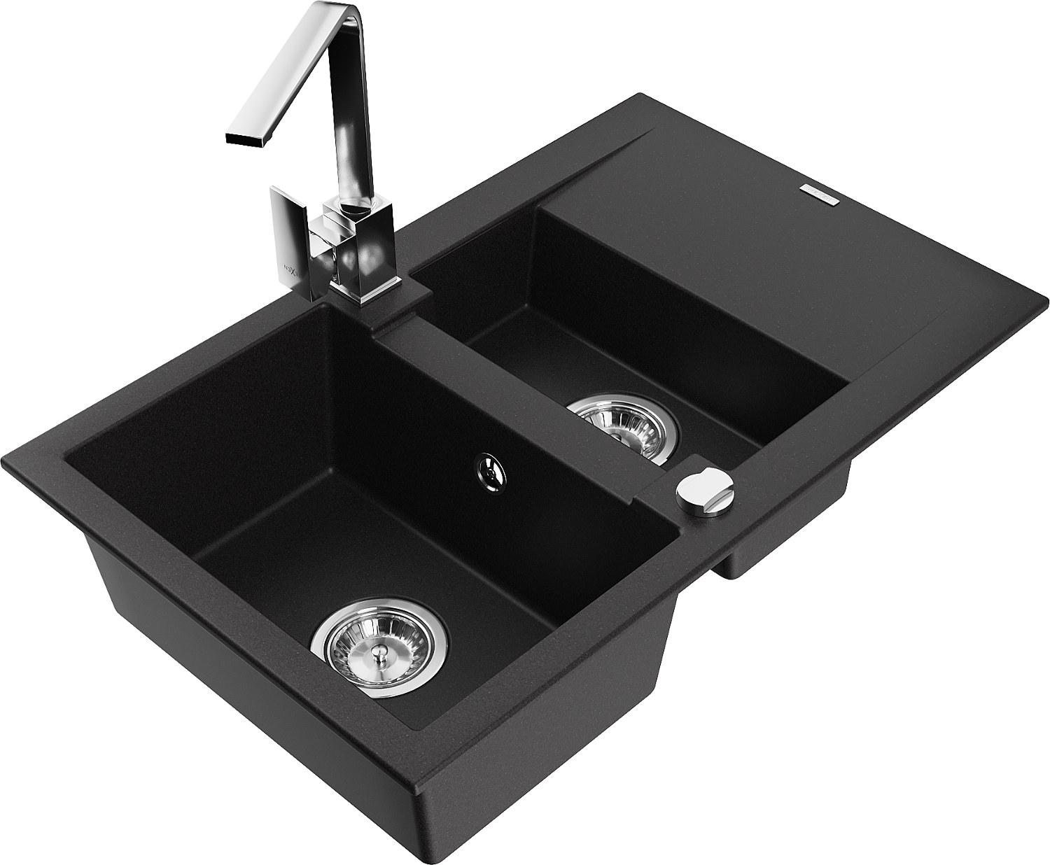 Mexen Gaspar évier en granit 1,5 bac avec égouttoir et robinet de cuisine Rita, noir - 6507-77-670300-00