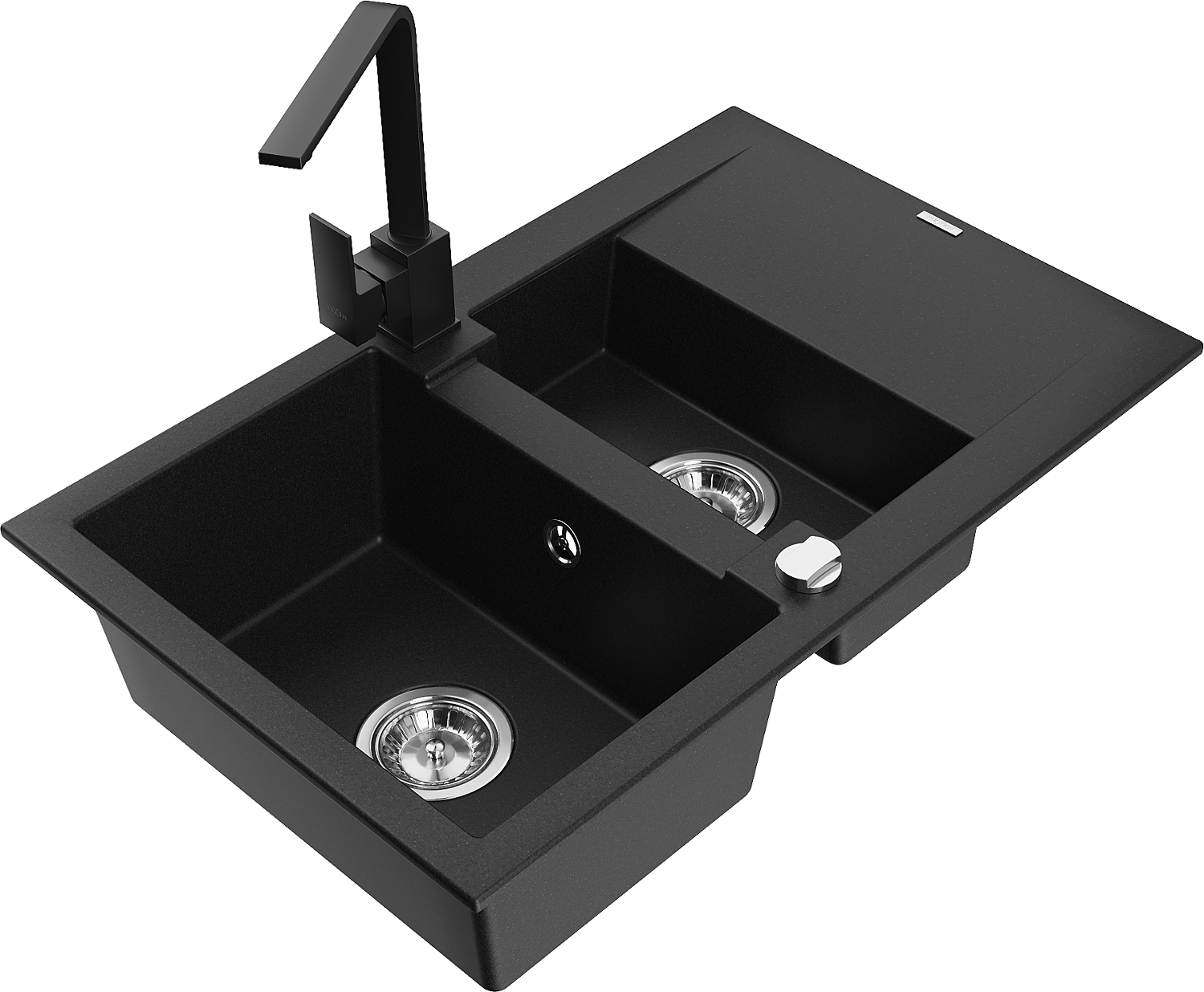 Mexen Gaspar évier en granit 1,5 bac avec égouttoir et robinet de cuisine Rita, noir - 6507-77-670300-70
