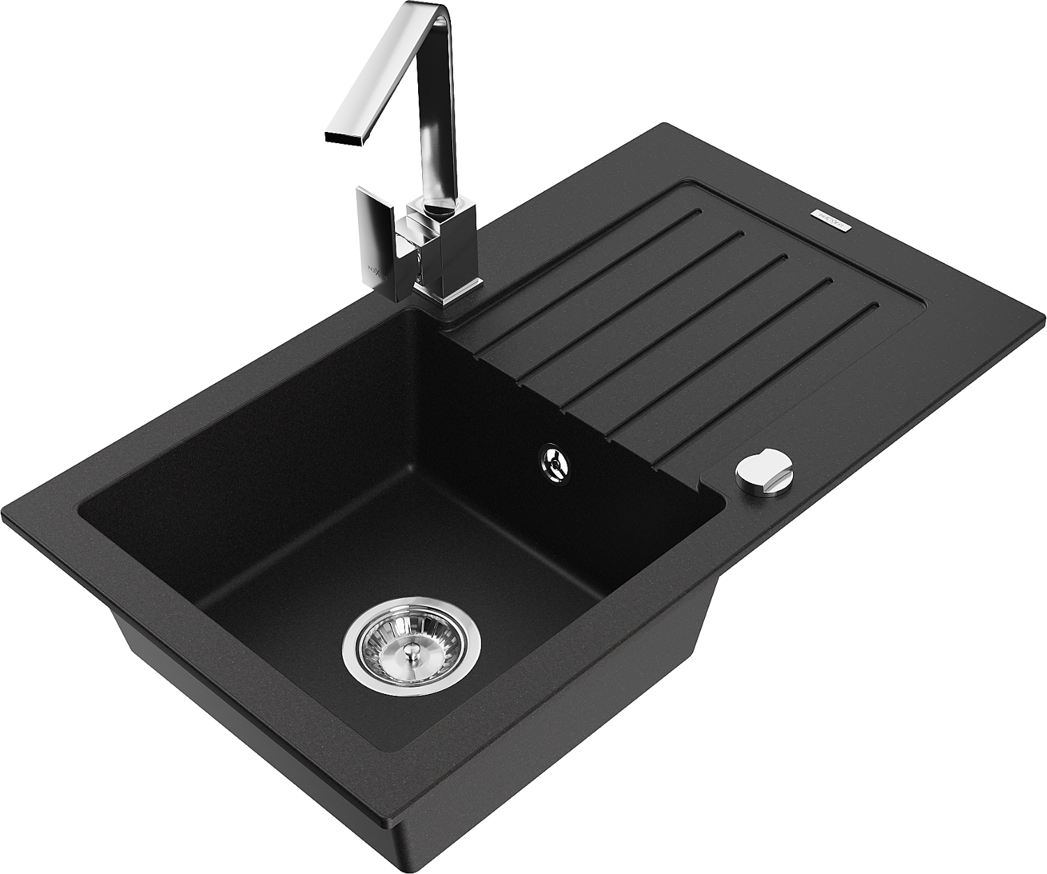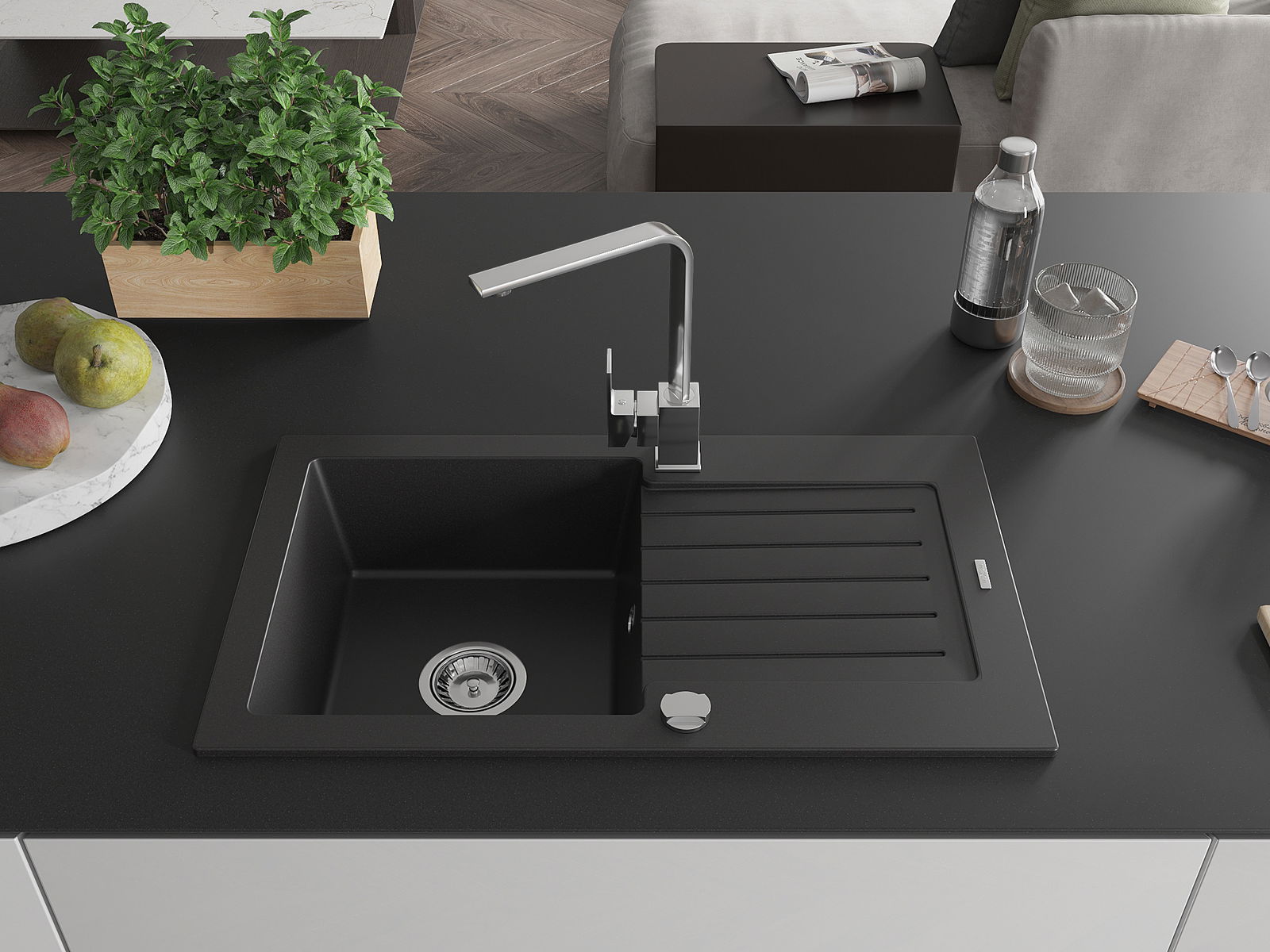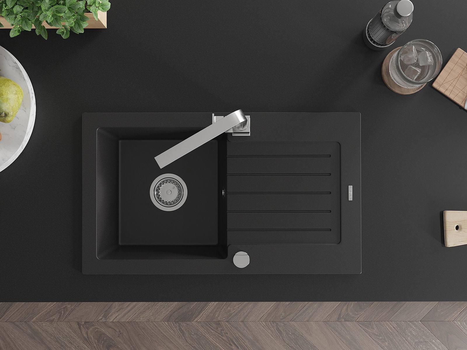 Mexen Pablo évier en granit 1 bac avec égouttoir et robinet de cuisine Rita, noir - 6510-77-670300-00