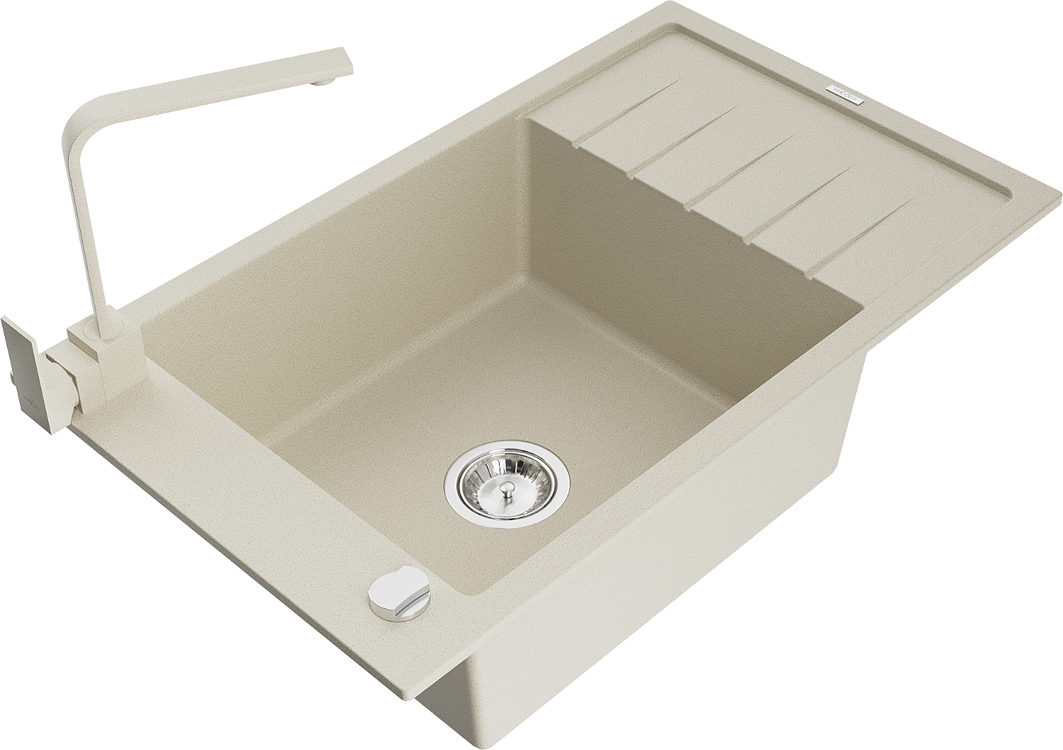 Mexen Elias évier en granit 1 bac avec égouttoir et robinet de cuisine Rita, beige - 6511-69-670300-69
