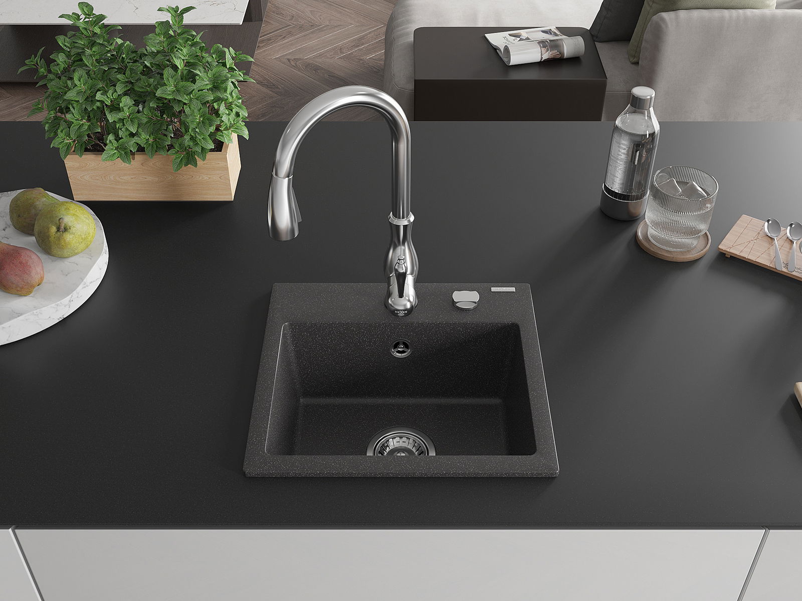 L'évier est fabriqué en granit de haute qualité. Il constitue un complément élégant et surtout pratique pour toute cuisine, quel que soit son style. La qualité et la durabilité du granit garantissent de nombreuses années d'utilisation.