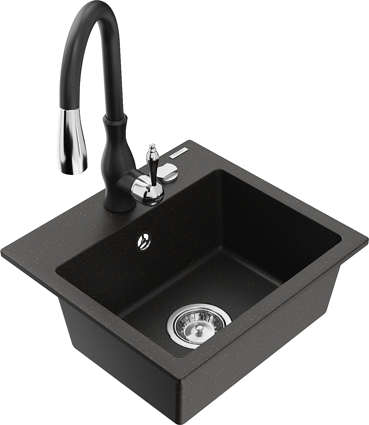 Mexen Milo évier de cuisine en granit 1 bac avec robinet de cuisine Savita, noir/or métallique - 6505-75-672601-70