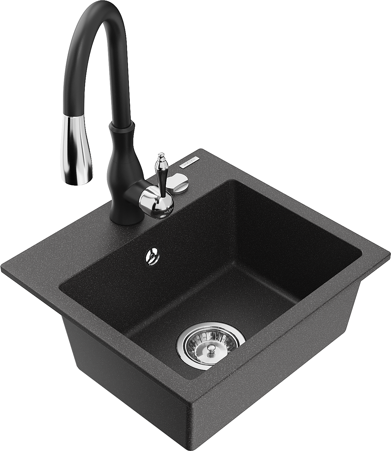 Mexen Milo évier en granit 1 bac avec robinet de cuisine Savita, noir moucheté - 6505-76-672601-70