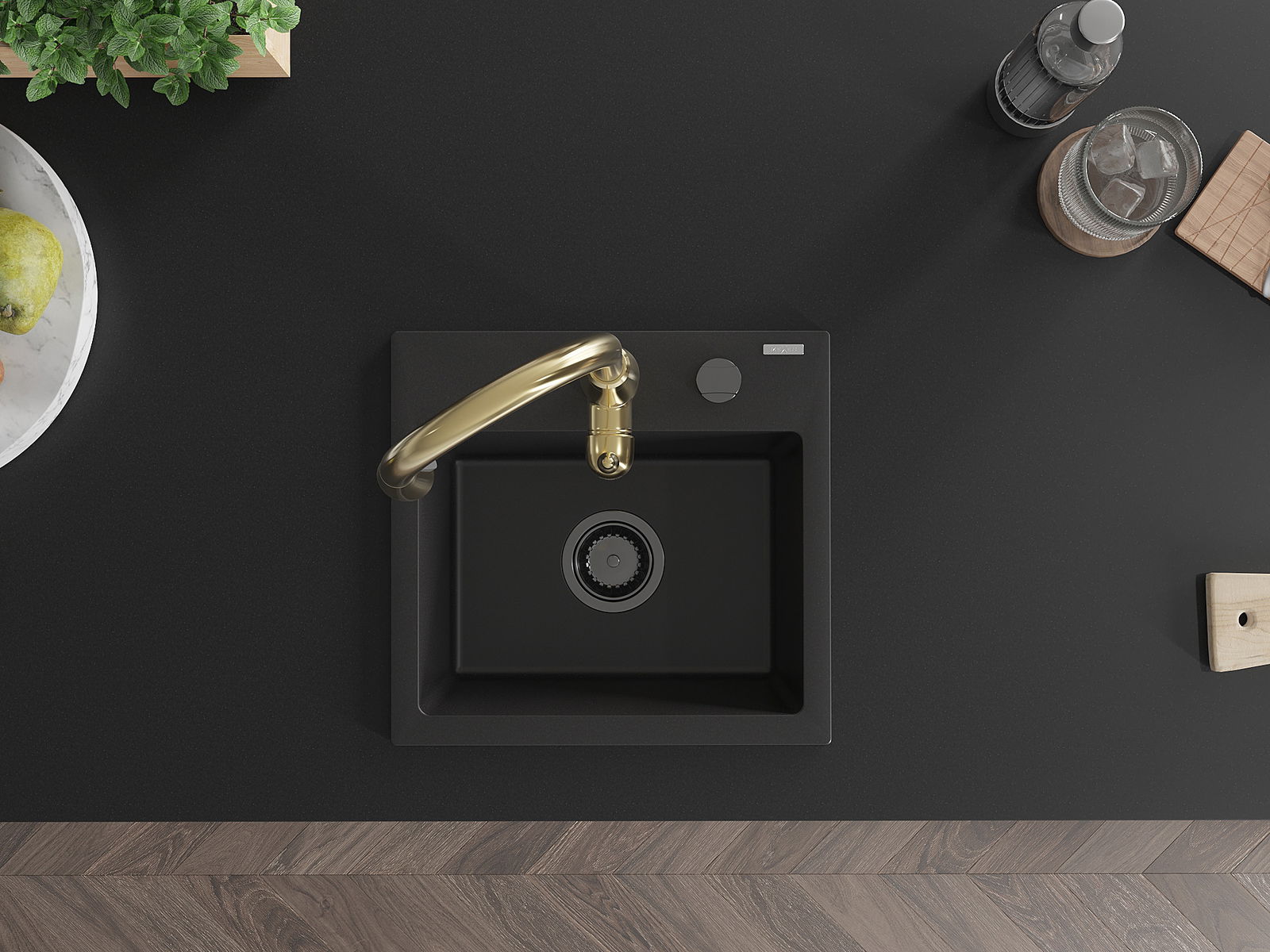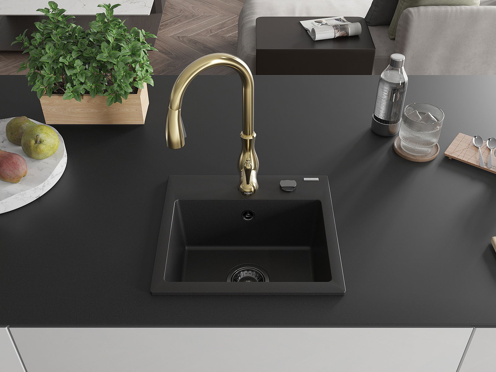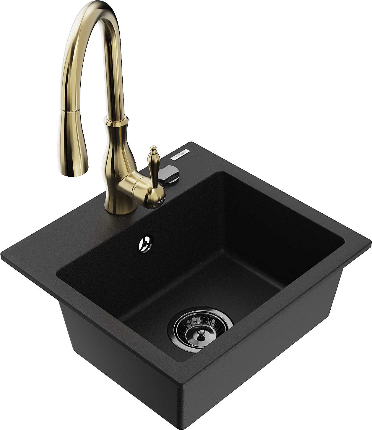 Mexen Milo évier en granit 1-bac avec robinet de cuisine Savita, noir - 6505-77-672601-50-B