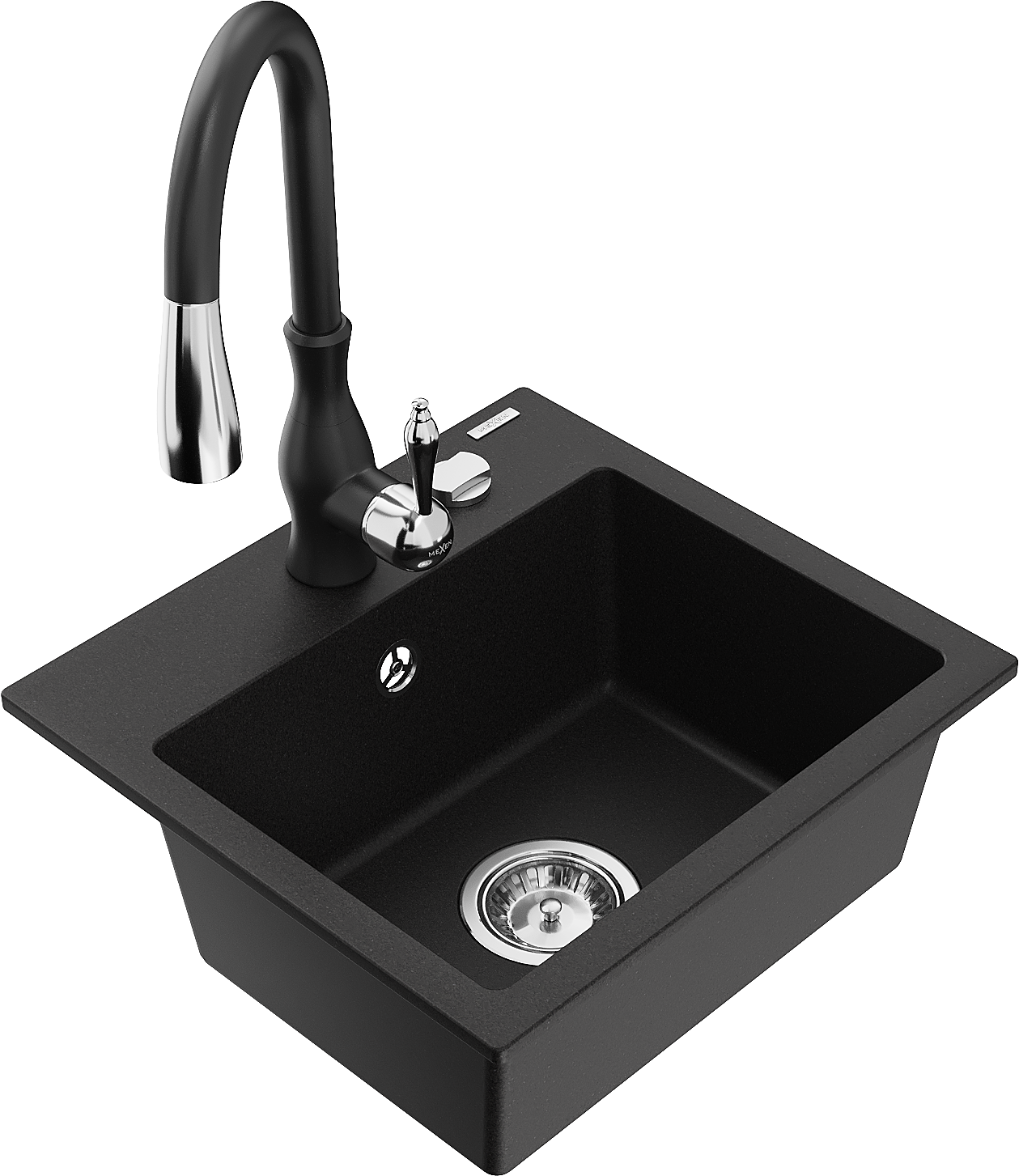 Mexen Milo évier en granit 1 bac avec mitigeur de cuisine Savita, noir - 6505-77-672601-70