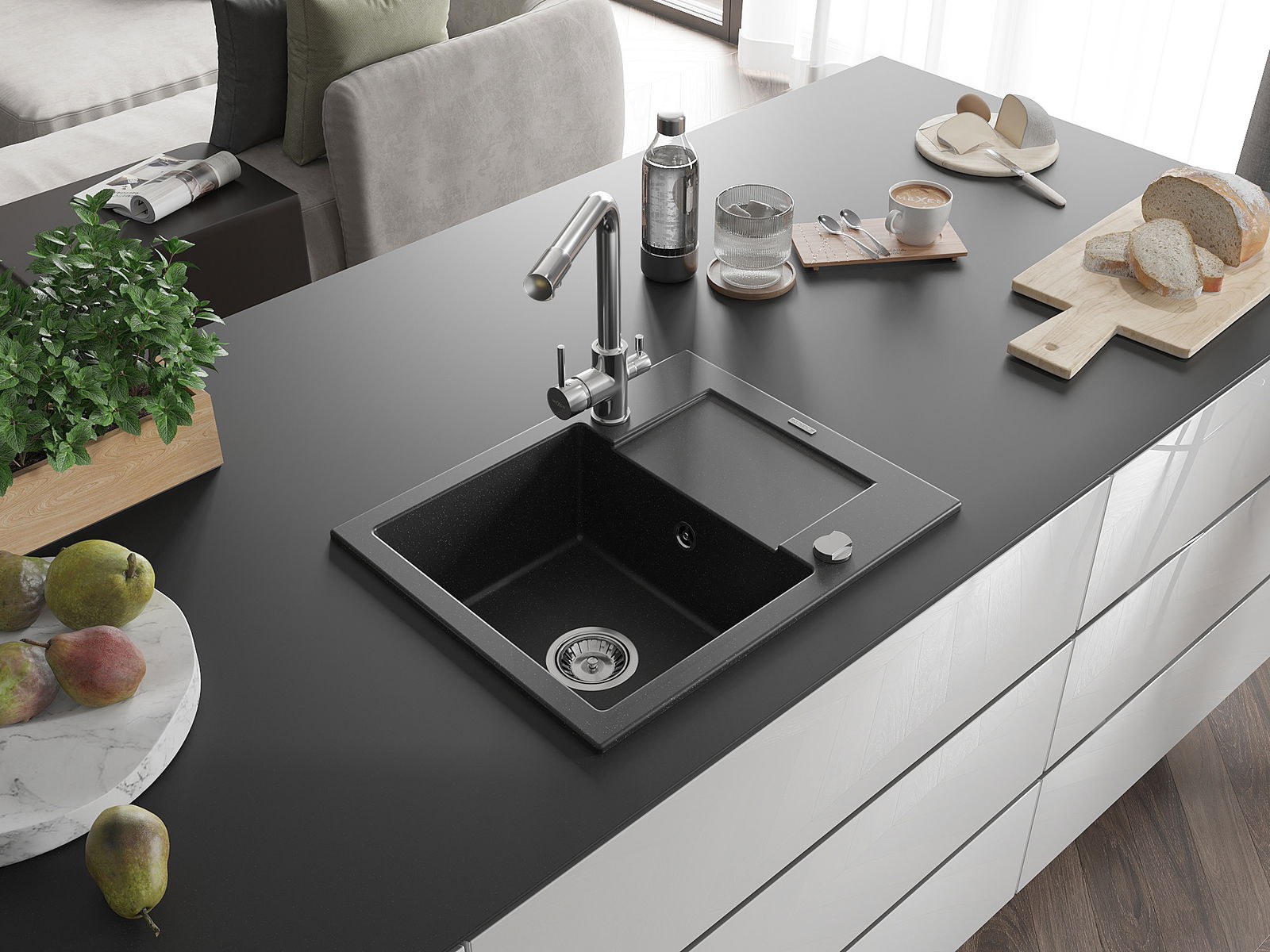 L'évier a été fabriqué en granit de haute qualité. Il constitue un complément élégant et surtout pratique pour chaque cuisine, quel que soit son style. La haute qualité et la durabilité du granit garantissent une utilisation de plusieurs années.