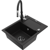 Mexen Enzo évier en granit 1 bac avec égouttoir et mitigeur de cuisine Savita, noir/argent métallisé - 6506-73-672601-70-B