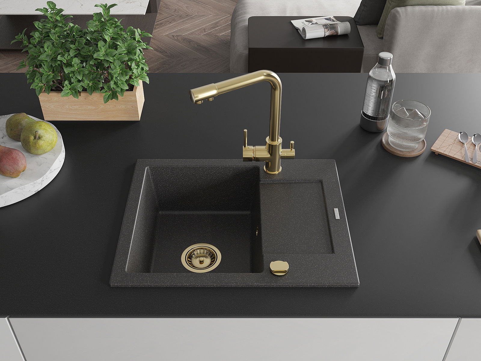 L'évier est fabriqué en granit de haute qualité. Il constitue un complément élégant et surtout pratique pour toute cuisine, quel que soit son style. La qualité et la durabilité du granit garantissent de nombreuses années d'utilisation.