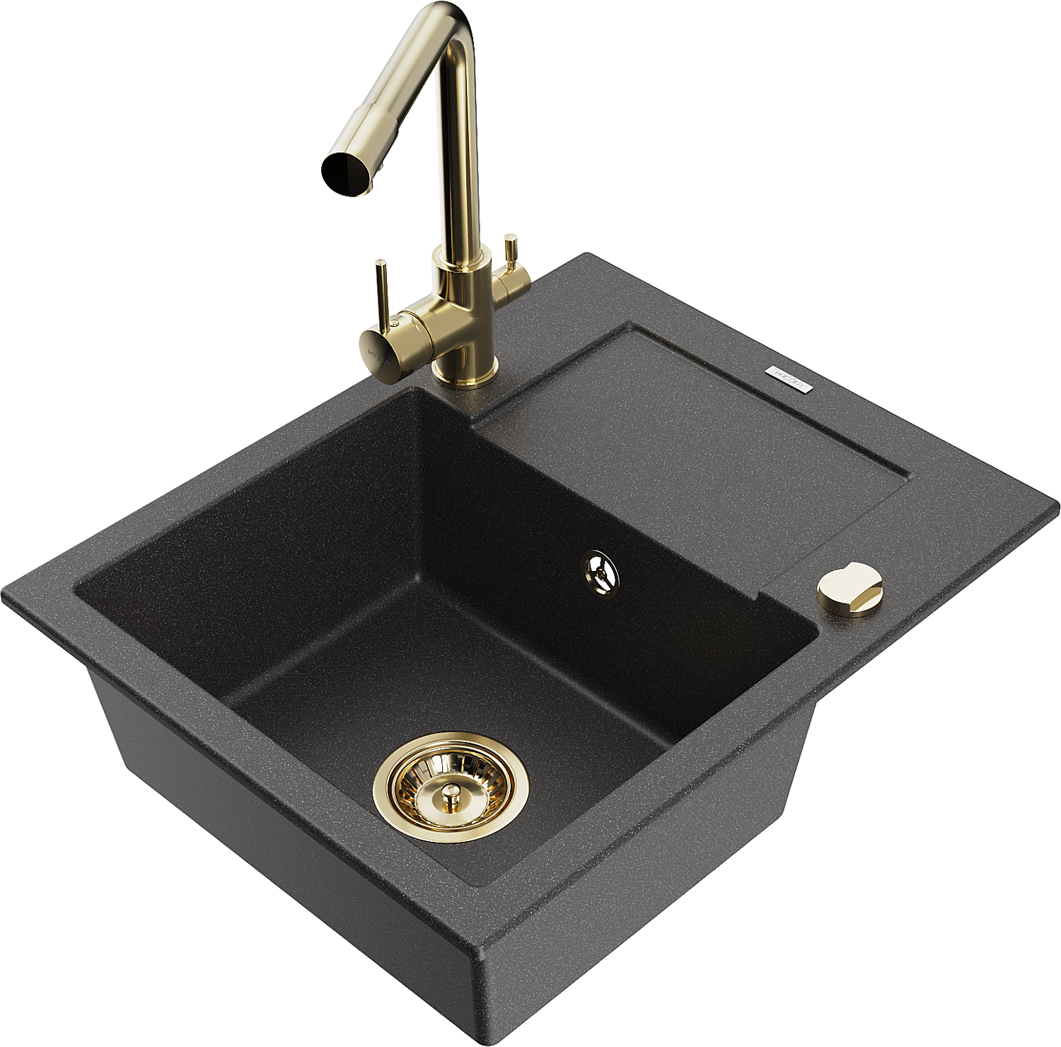 Mexen Enzo évier en granit à 1 bac avec égouttoir et robinet de cuisine Duero, noir moucheté - 6506-76-671600-50