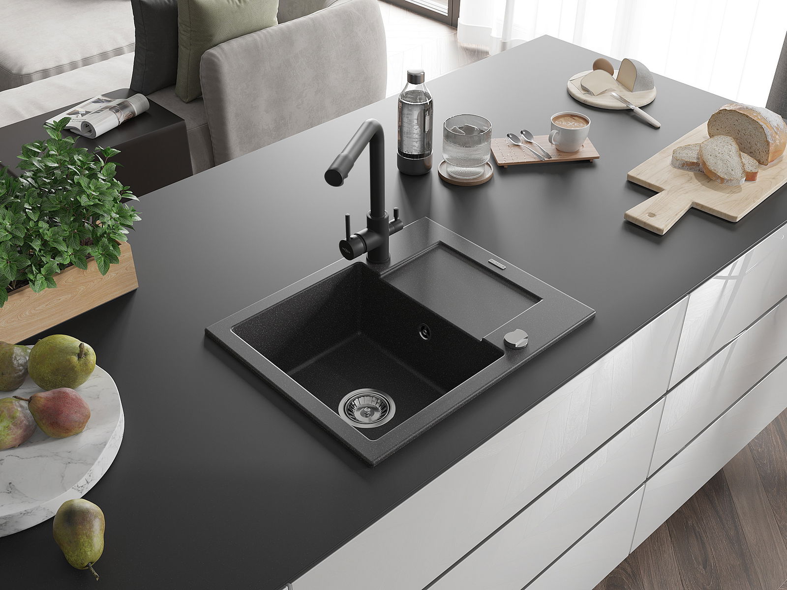 L'évier est fabriqué en granit de haute qualité. Il constitue un complément élégant et surtout pratique pour toute cuisine, quel que soit son style. La qualité et la durabilité du granit garantissent de nombreuses années d'utilisation.