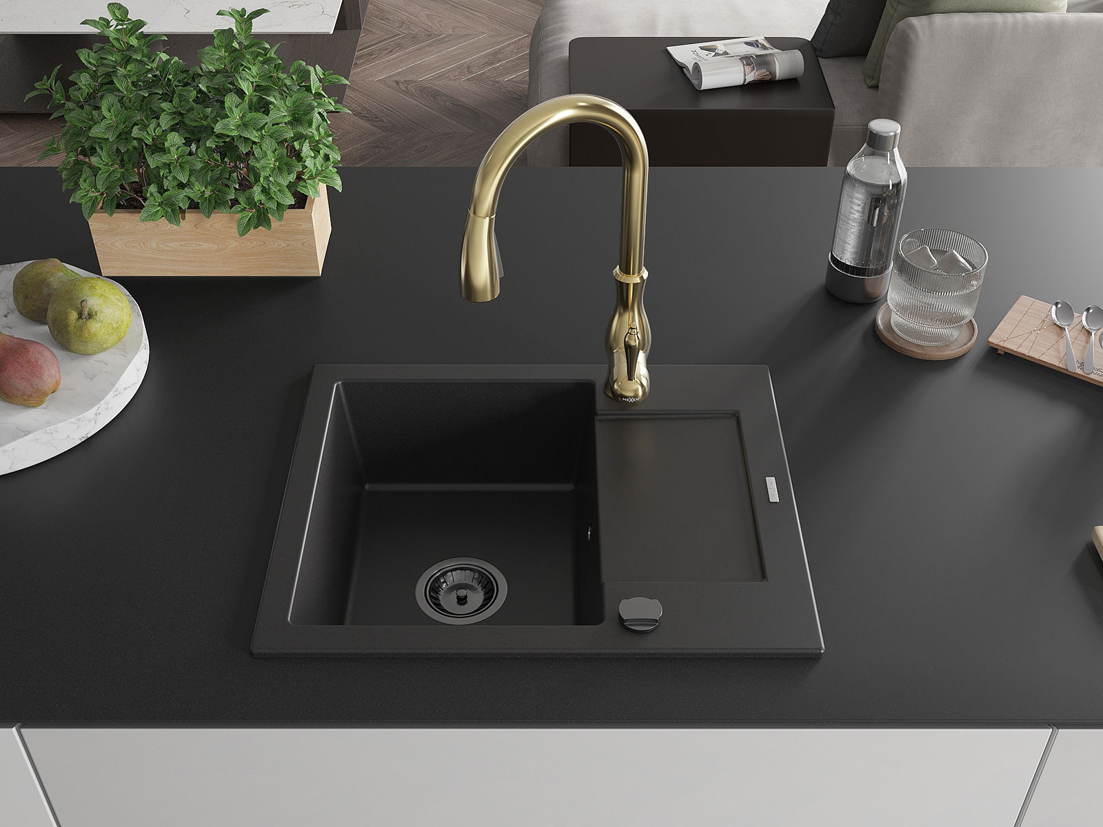 Mexen Enzo évier en granit 1 bac avec égouttoir et mitigeur Savita, noir - 6506-77-672601-50-B
