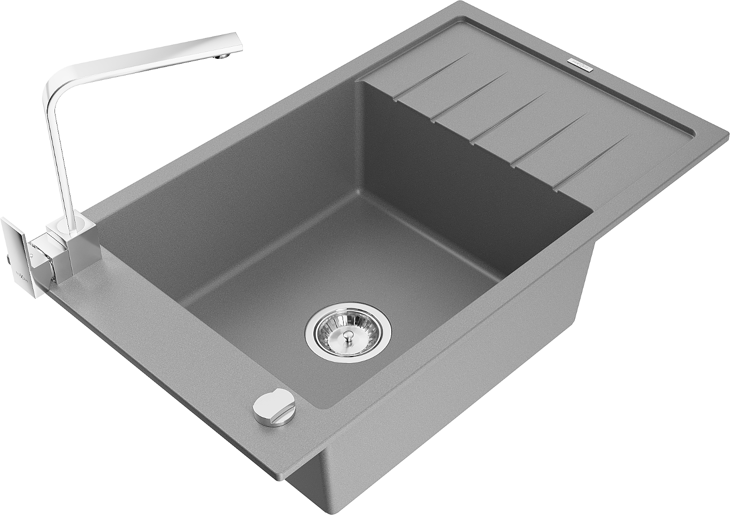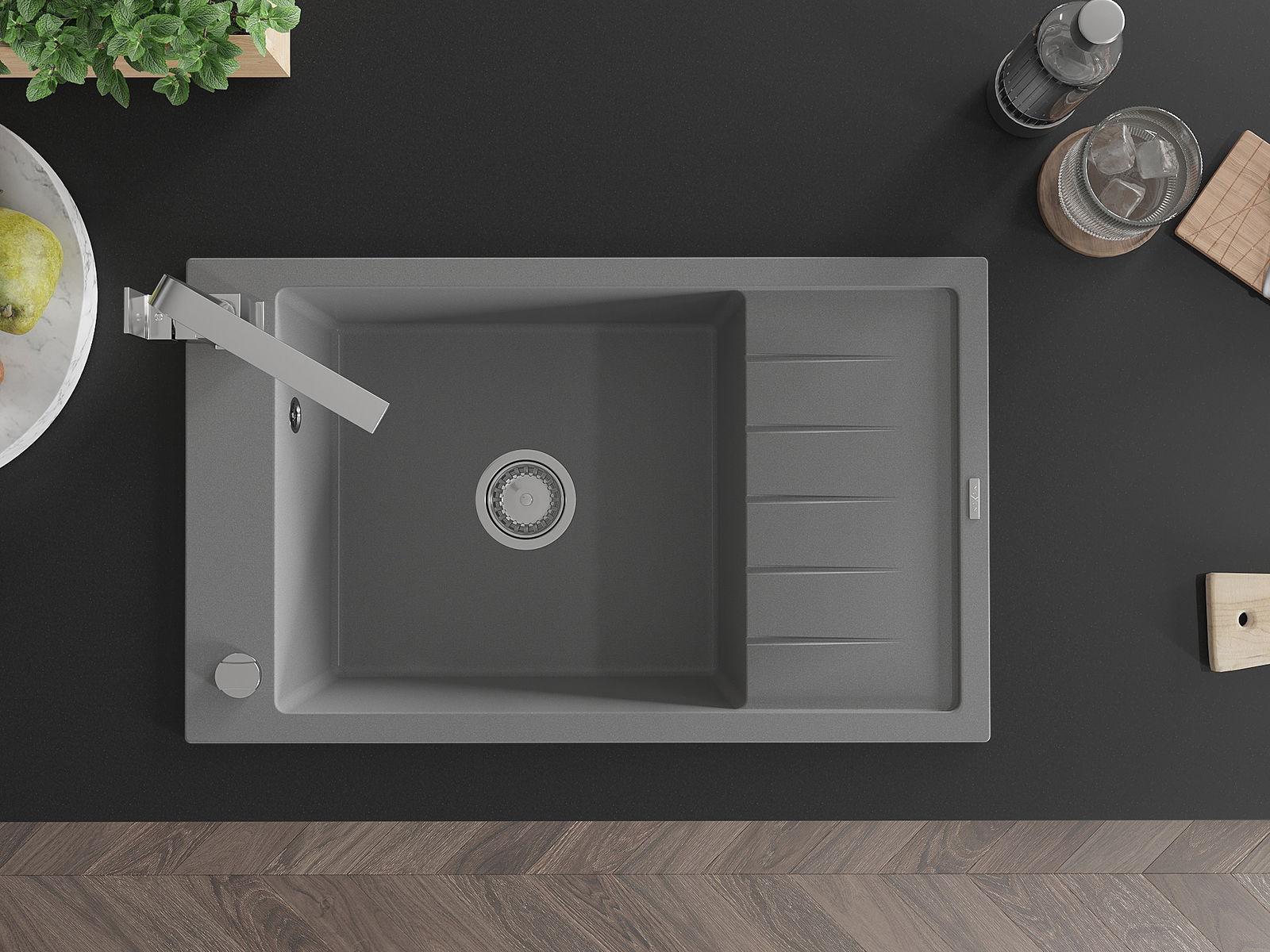 Mexen Elias évier en granit 1 bac avec égouttoir et mitigeur cuisine Rita, gris - 6511-71-670300-00