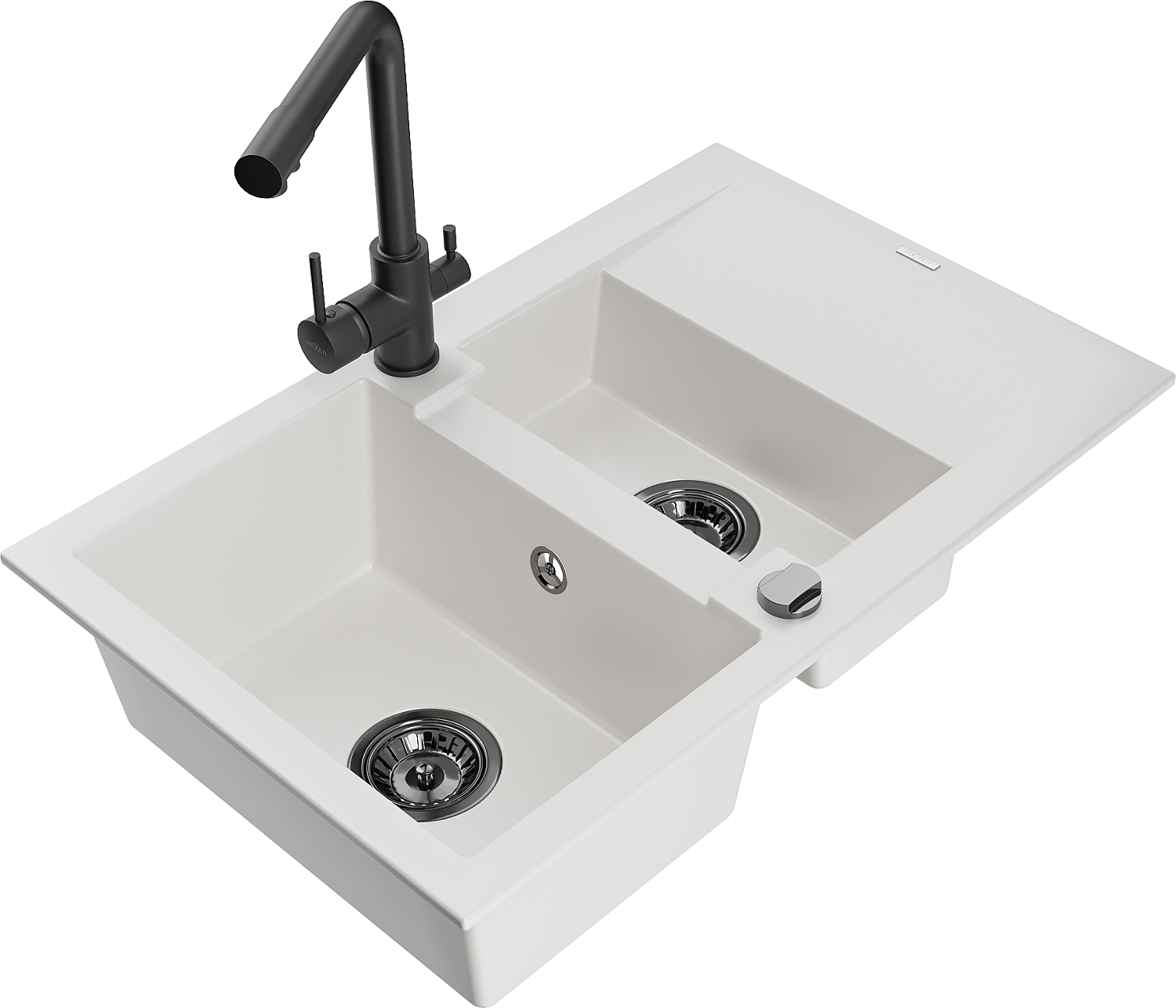 Mexen Gaspar évier en granite 1,5 bac avec égouttoir et robinet de cuisine Duero, blanc - 6507-20-671600-70