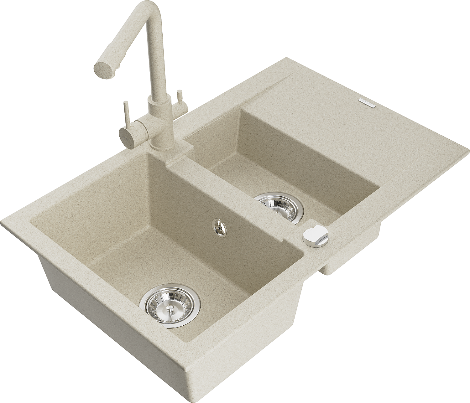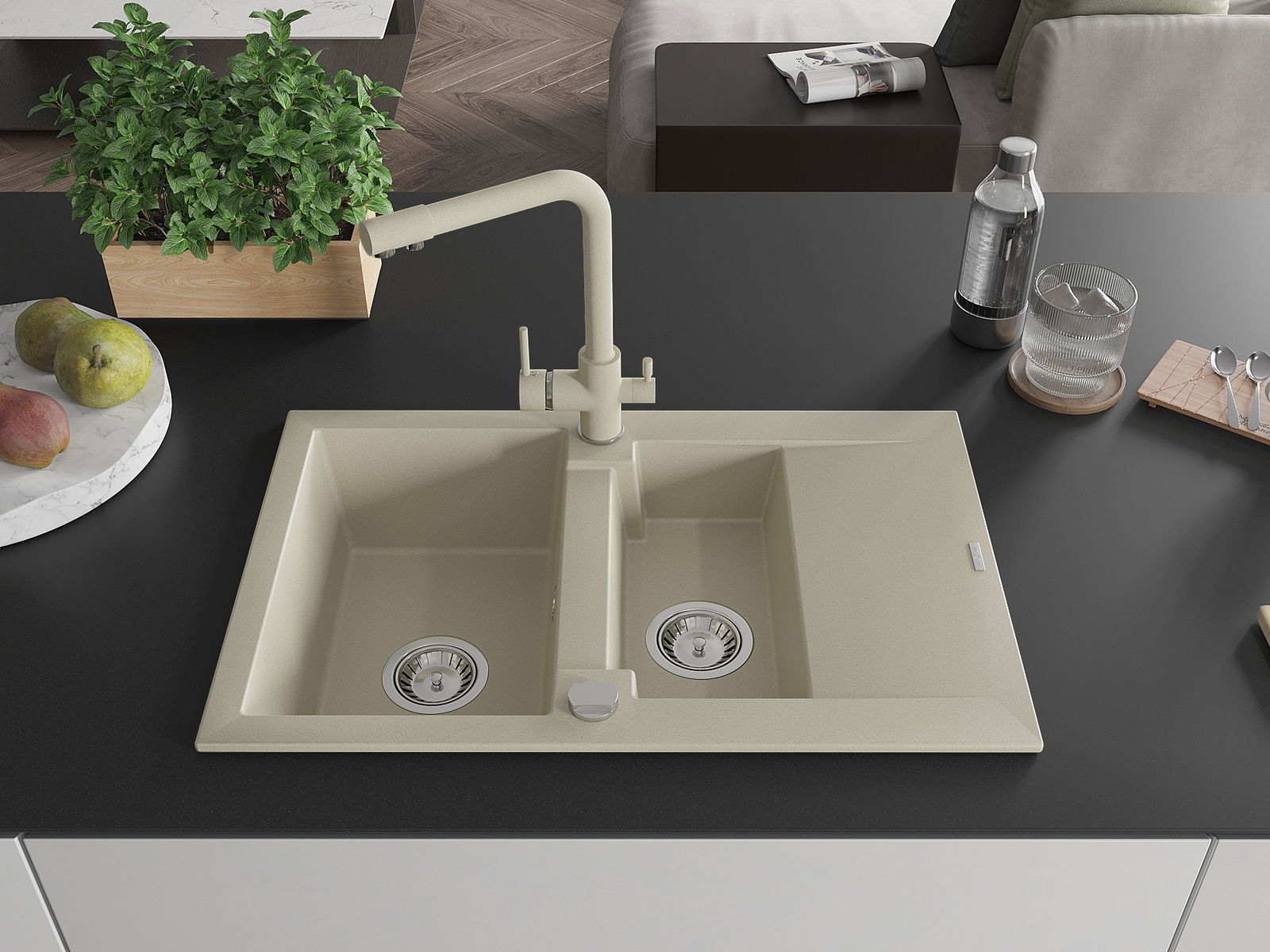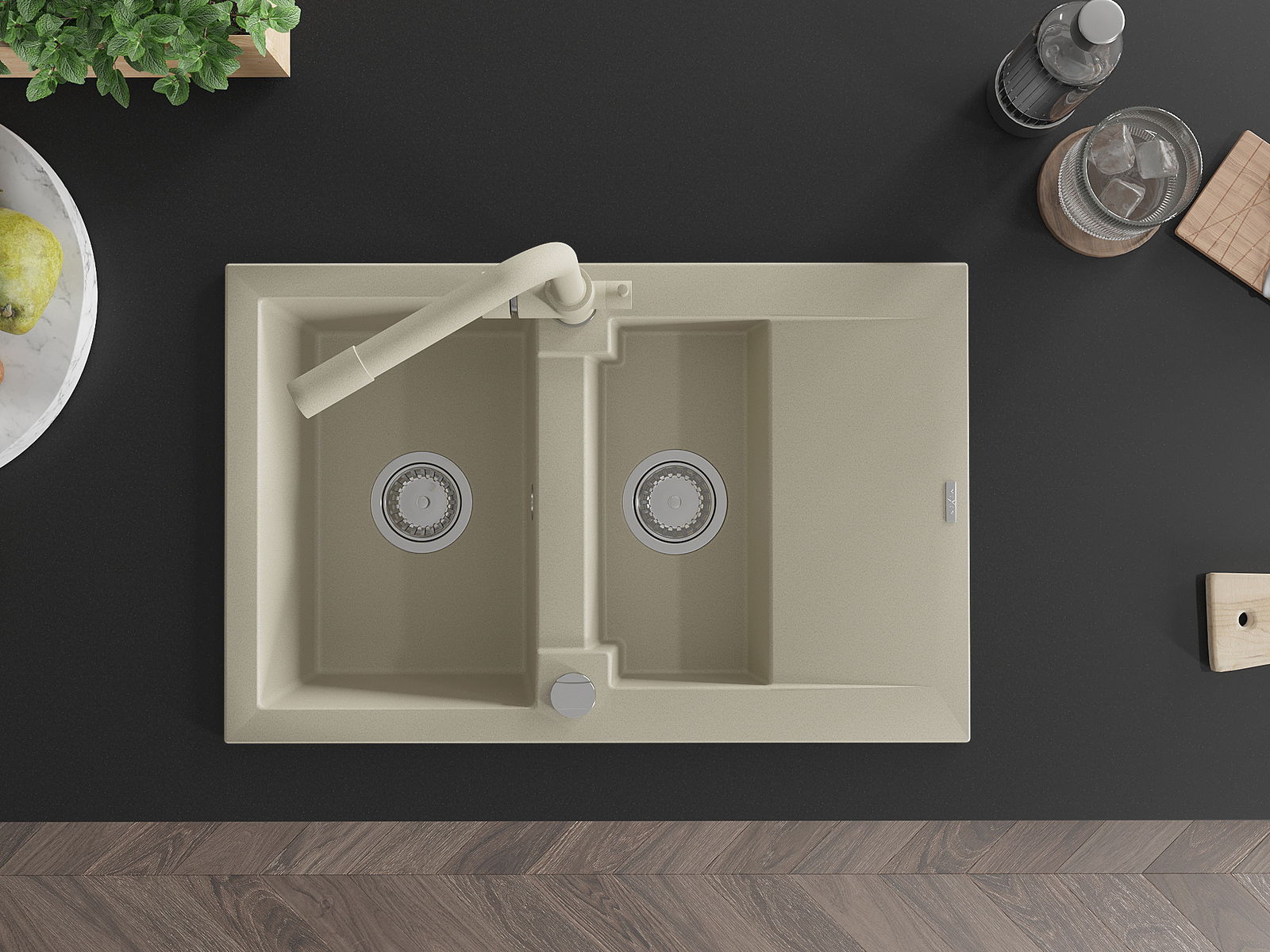 Mexen Gaspar évier en granit 1,5 bac avec égouttoir et robinet de cuisine Duero, beige - 6507-69-671600-69