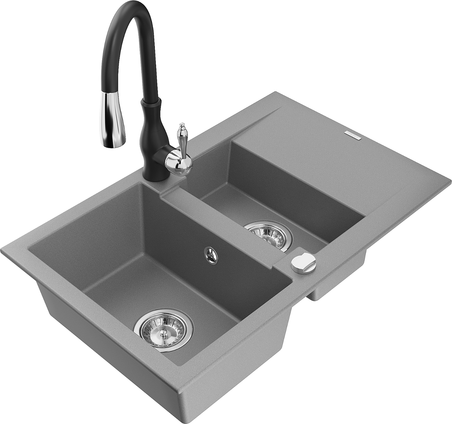 Mexen Gaspar évier en granit 1,5 bac avec égouttoir et robinet de cuisine Savita, gris - 6507-71-672601-70
