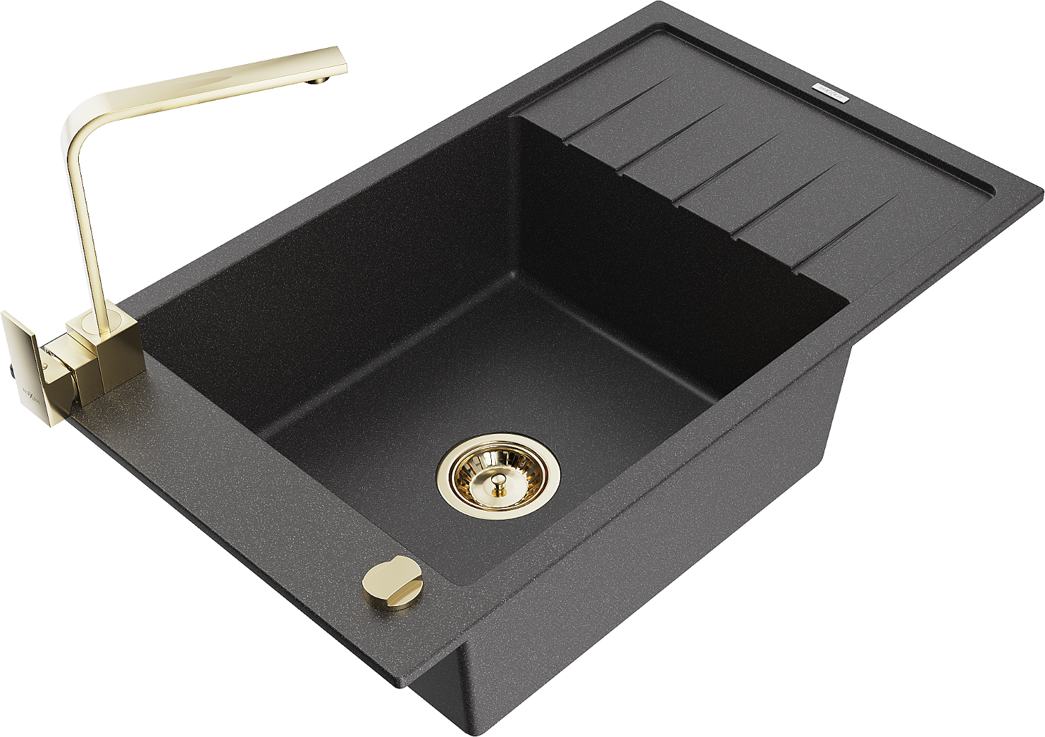 Mexen Elias évier granitique 1 bac avec égouttoir et mitigeur de cuisine Rita, noir moucheté - 6511-76-670300-50