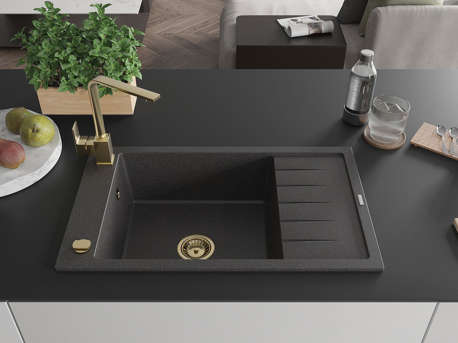 L'évier est fabriqué en granit de haute qualité. Il constitue un complément élégant et surtout pratique pour toute cuisine, quel que soit son style. La qualité et la durabilité du granit garantissent de nombreuses années d'utilisation.