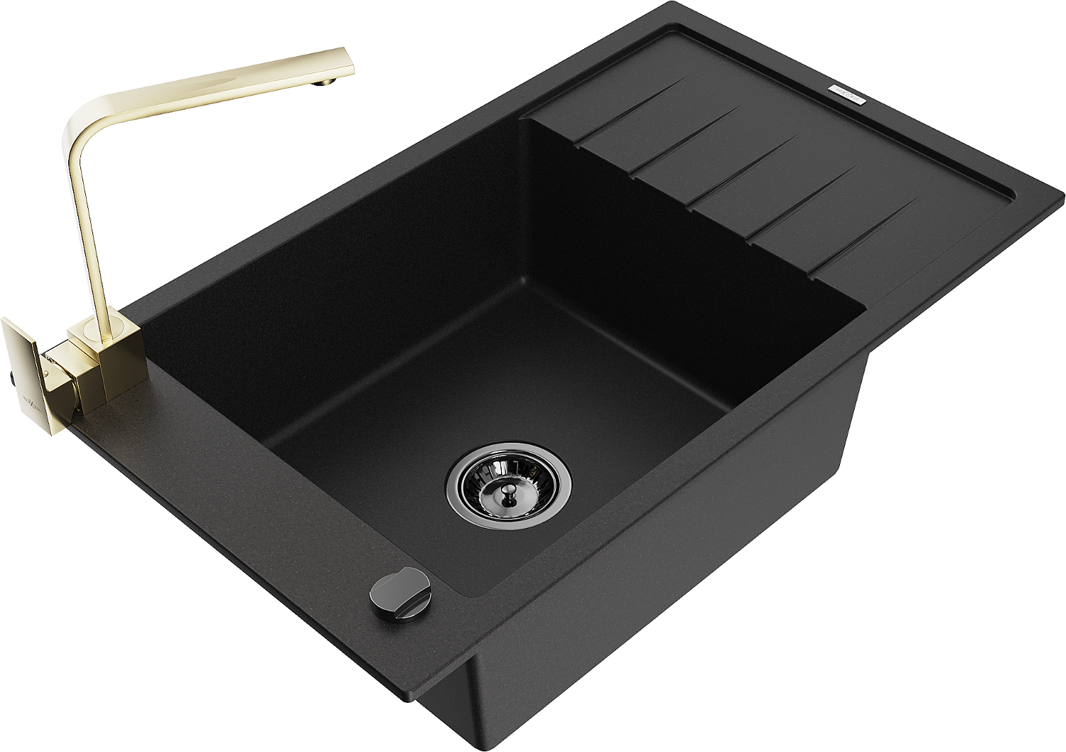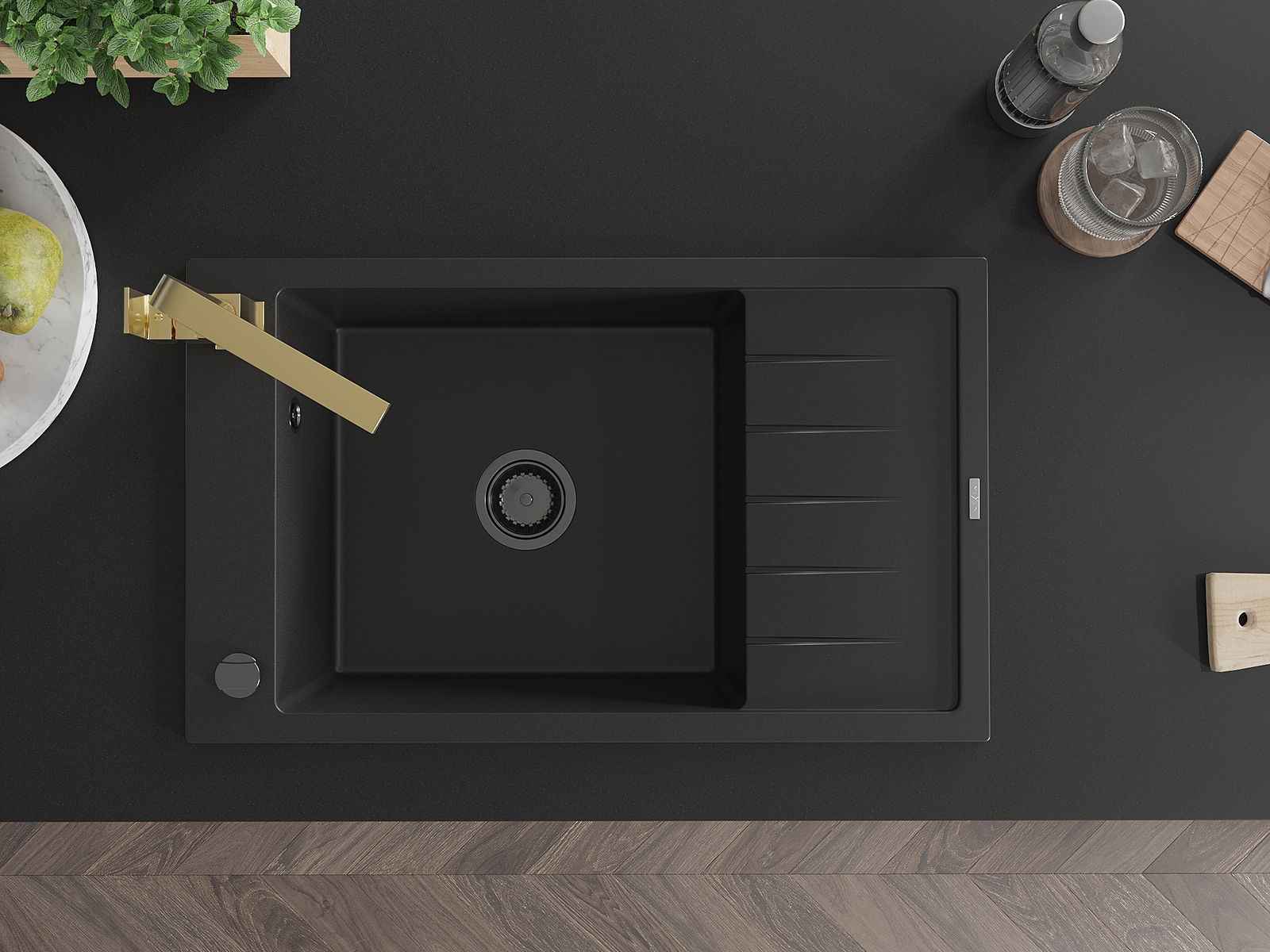Mexen Elias évier en granit à 1 bac avec égouttoir et robinet de cuisine Rita, noir - 6511-77-670300-50-B