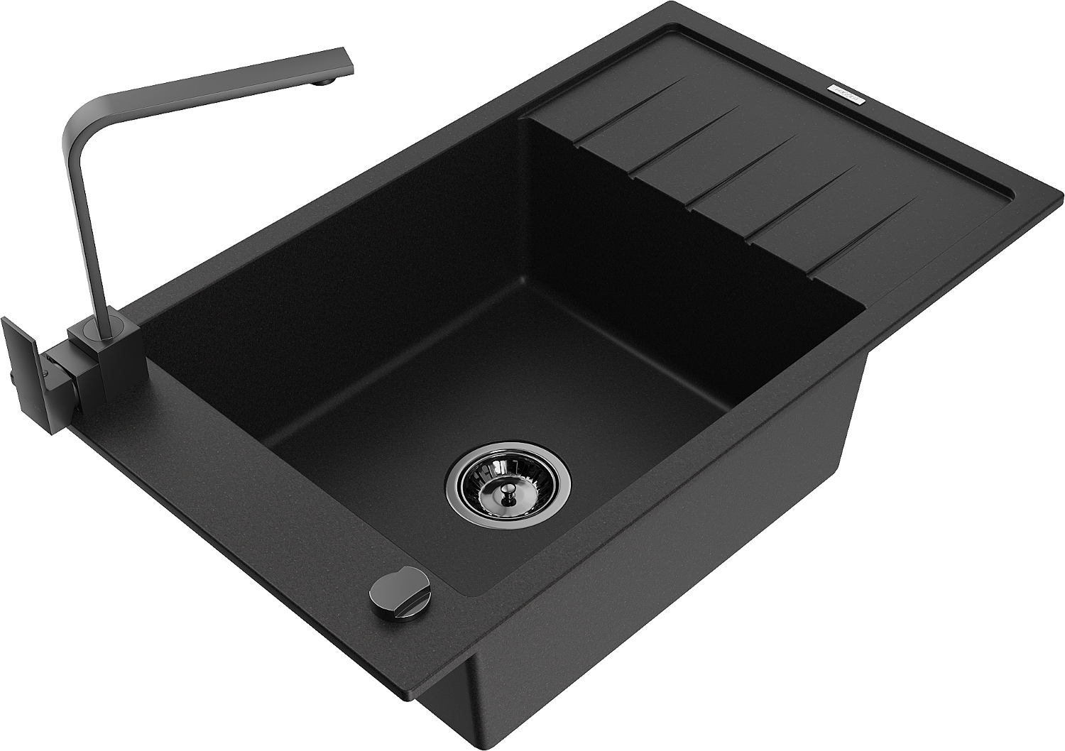 Mexen Elias évier de cuisine en granit 1 bac avec égouttoir et robinet de cuisine Rita, noir - 6511-77-670300-70-B