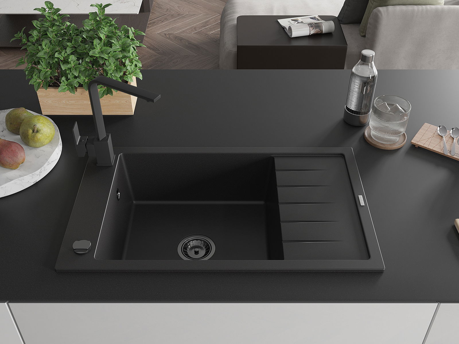 L'évier est fabriqué en granit de haute qualité. Il constitue un complément élégant et surtout pratique pour toute cuisine, quel que soit son style. La qualité et la durabilité du granit garantissent de nombreuses années d'utilisation.