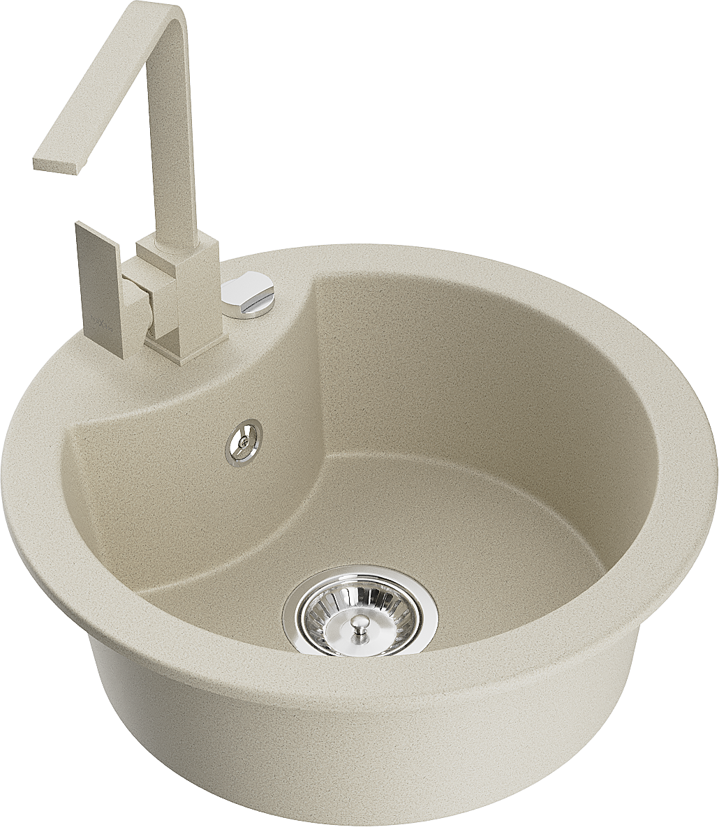 Mexen Diego évier en granit 1 bac avec robinet de cuisine Rita, beige - 6512-69-670300-69