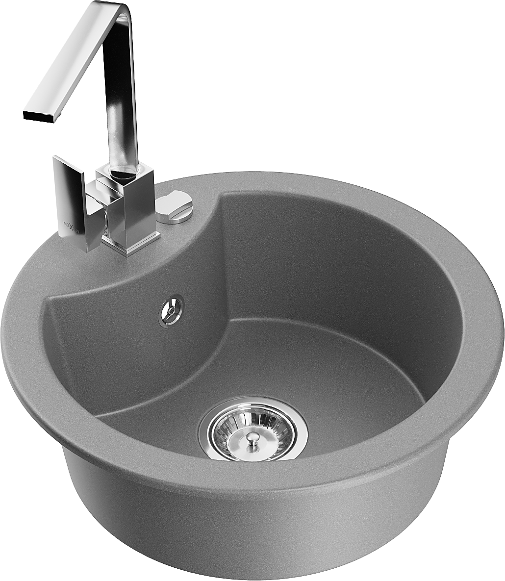 Mexen Diego évier en granit 1 bac avec robinet de cuisine Rita, gris - 6512-71-670300-00