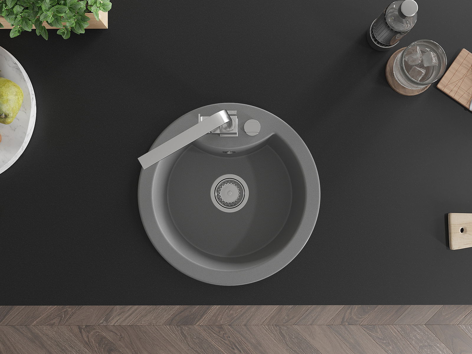 L'évier est doté d'un trou fraisé de 35 mm de diamètre pour l'auto-perçage. Il peut notamment accueillir un distributeur de liquide, ce qui éliminera les bouteilles en plastique dans la cuisine et lui apportera une finition élégante.