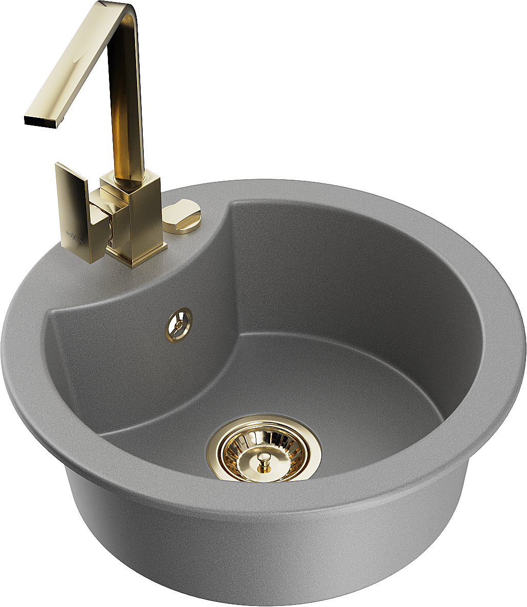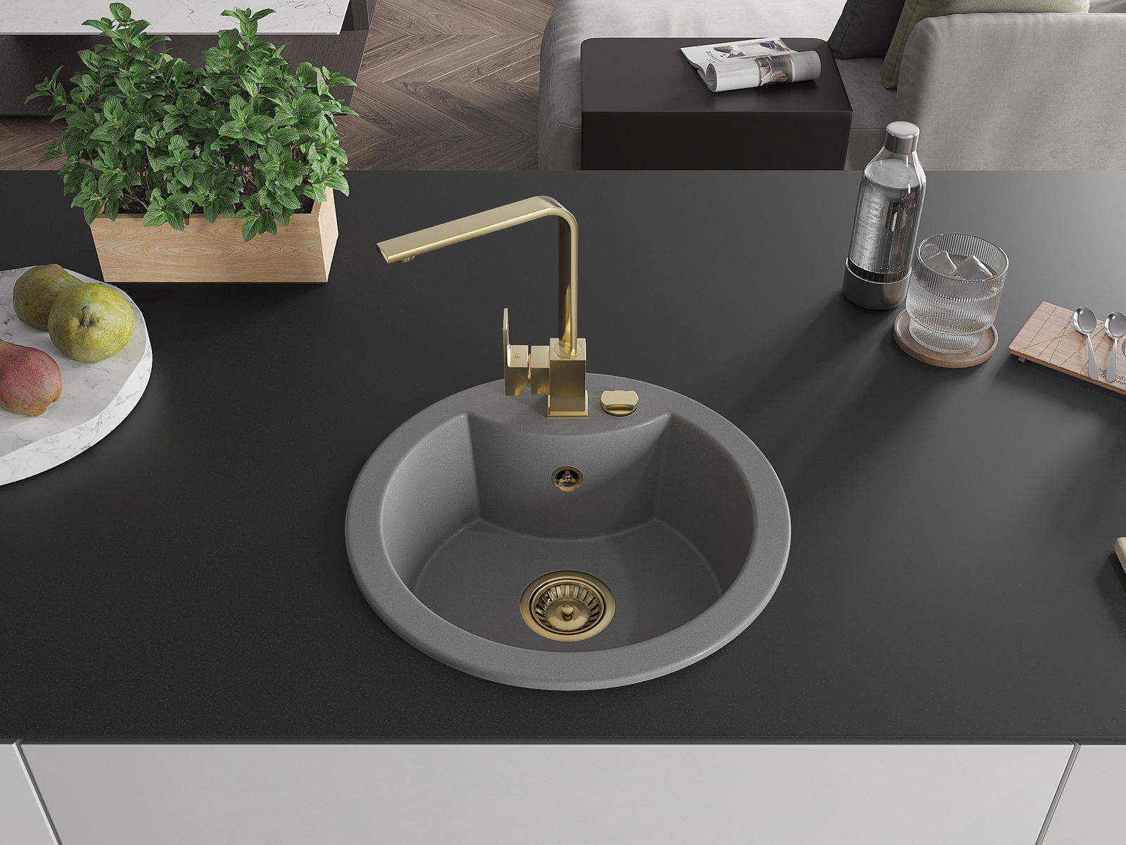 Mexen Diego évier en granit 1 bac avec robinet de cuisine Rita, gris - 6512-71-670300-50