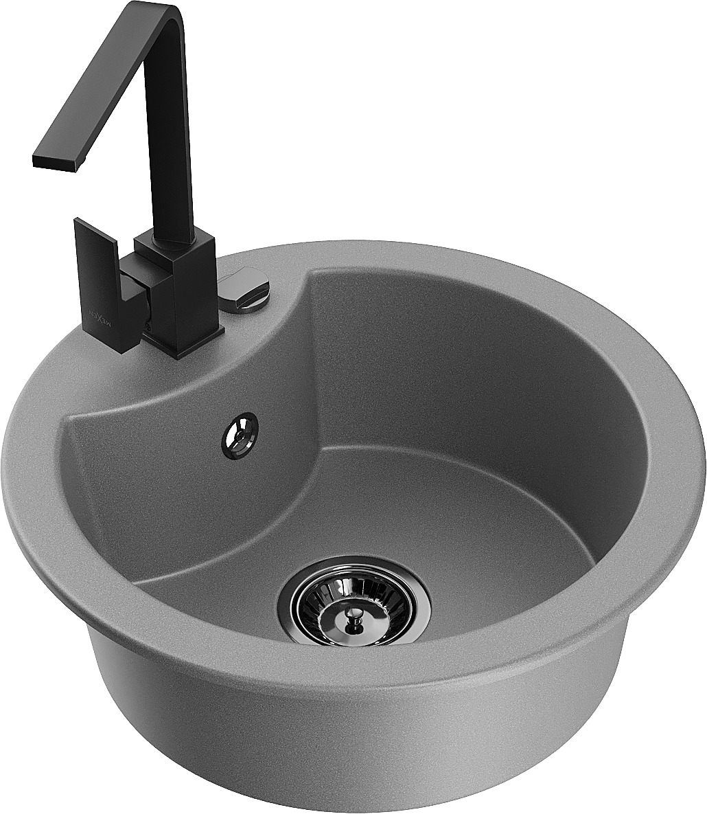 Mexen Diego évier en granit 1 bac avec mitigeur de cuisine Rita, gris - 6512-71-670300-70-B