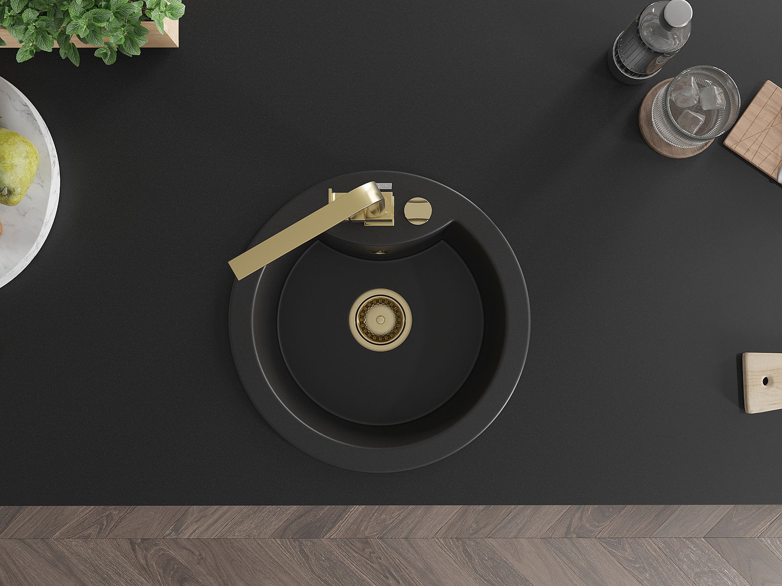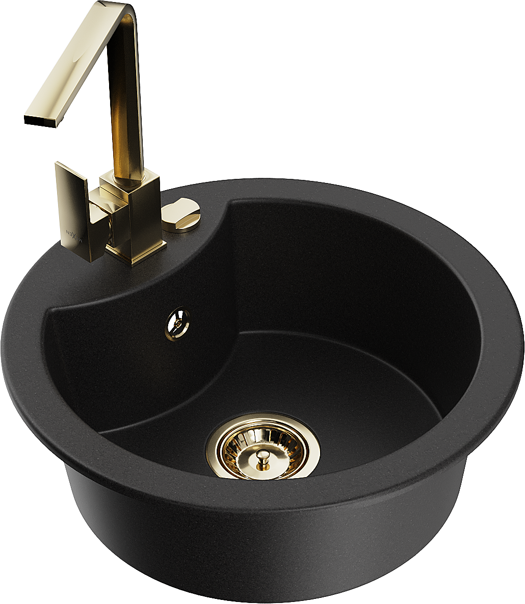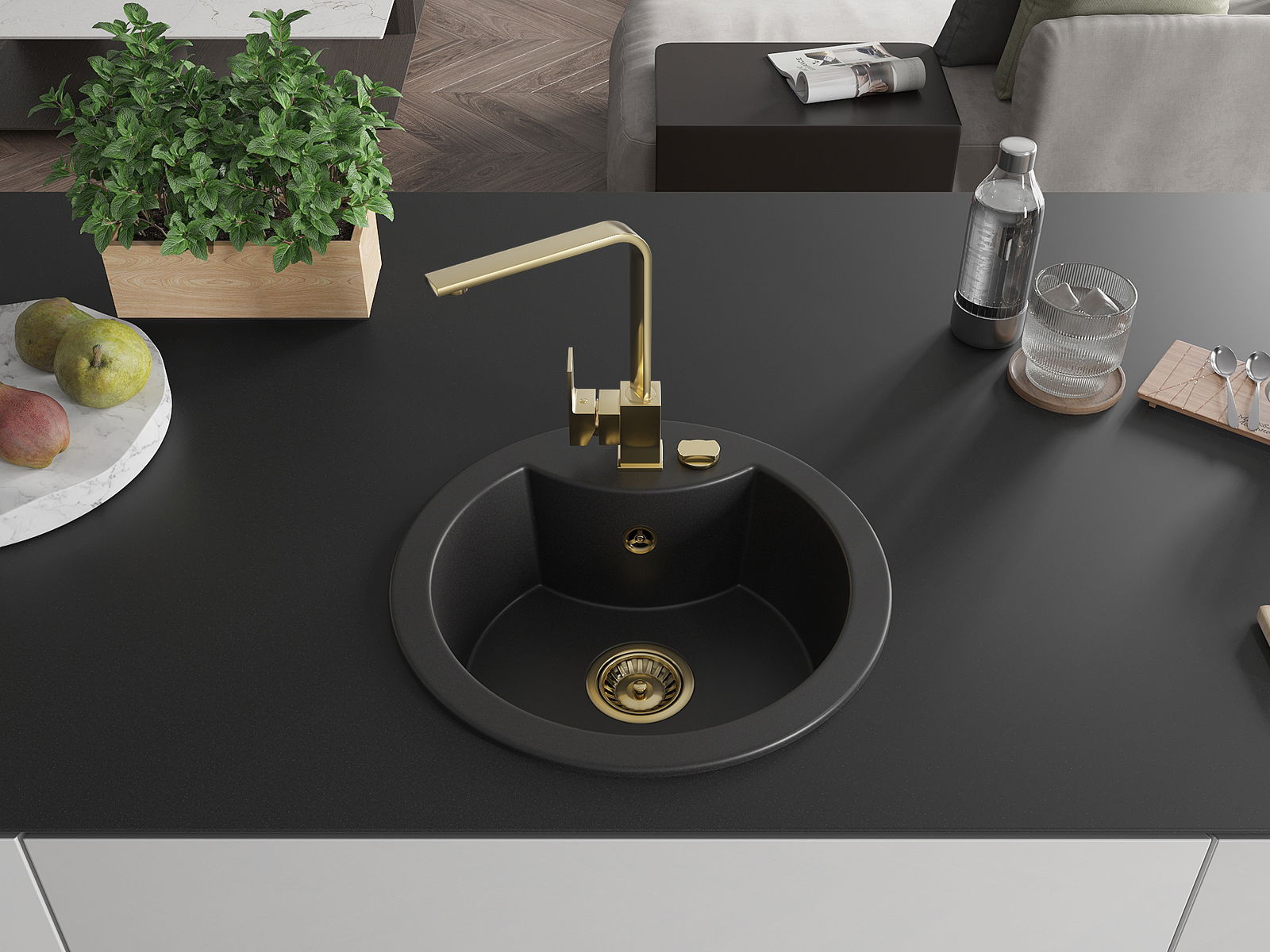 Mexen Diego évier en granit 1 cuve avec robinet de cuisine Rita, noir - 6512-77-670300-50