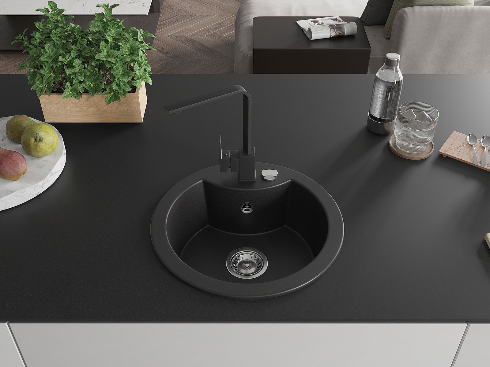 Mexen Diego évier en granit 1 bac avec robinet de cuisine Rita, noir - 6512-77-670300-70