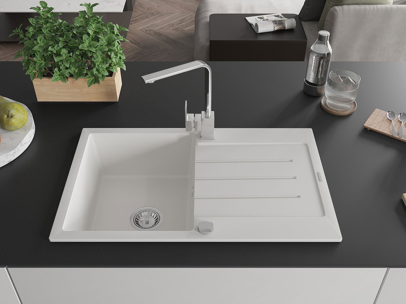 L'évier est fabriqué en granit de haute qualité. Il constitue un complément élégant et surtout pratique pour toute cuisine, quel que soit son style. La qualité et la durabilité du granit garantissent de nombreuses années d'utilisation.