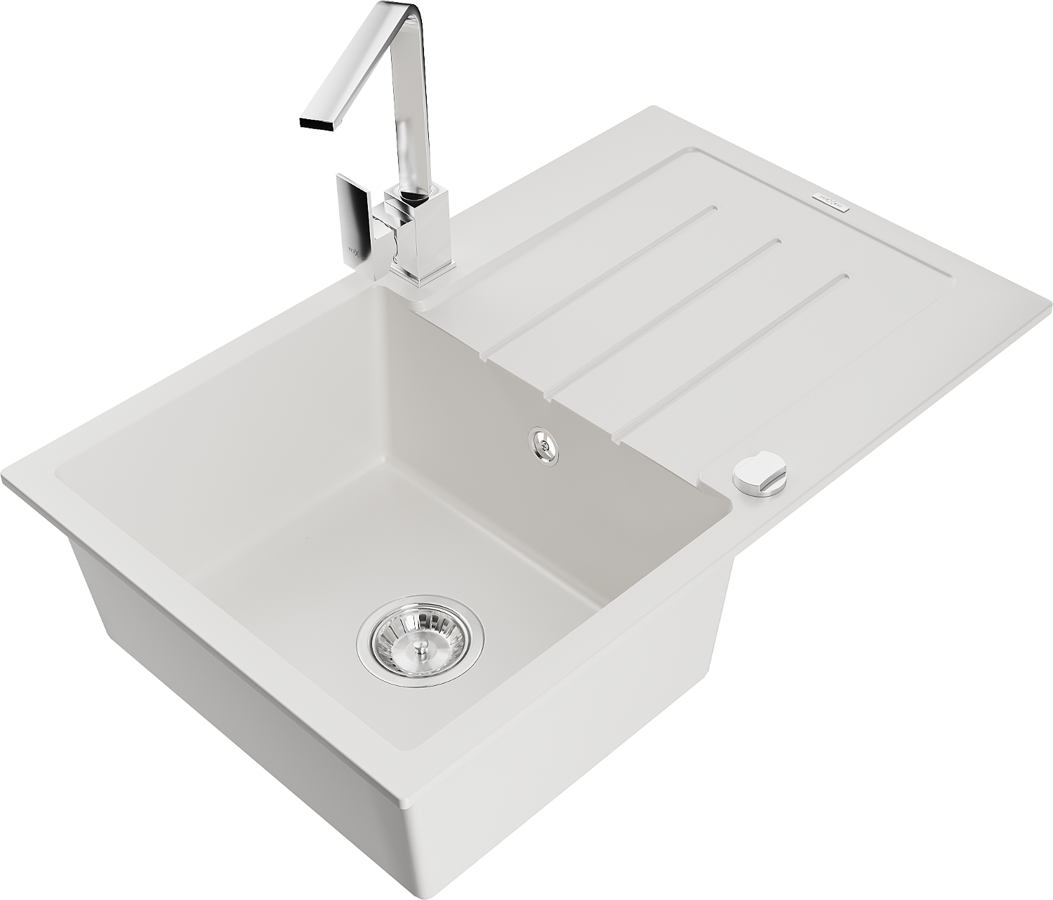 Mexen Bruno évier en granit 1 cuve avec égouttoir et robinet de cuisine Rita, blanc - 6513-20-670300-00