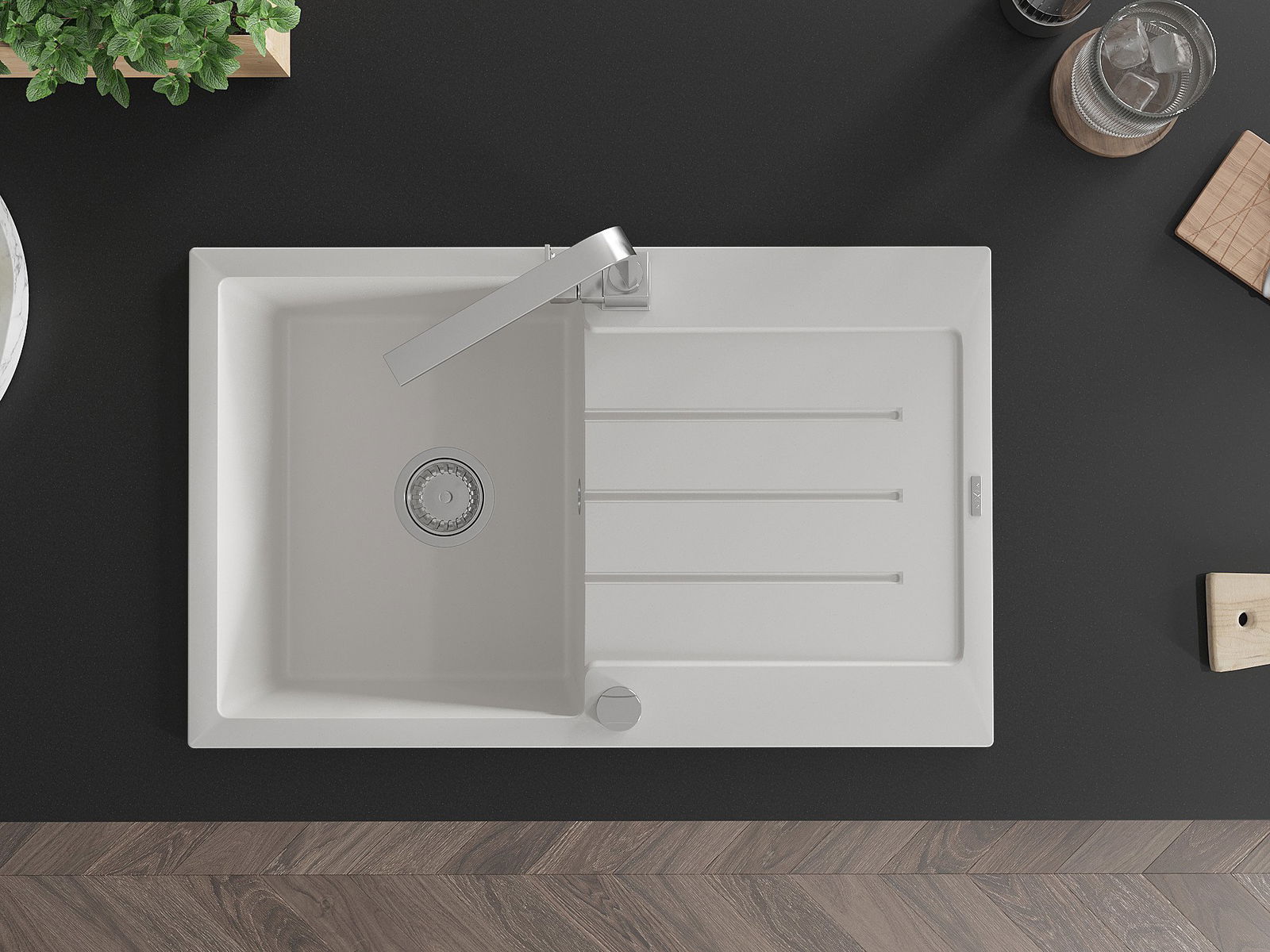La surface de l'évier est très bien trempée et se distingue par une résistance exceptionnelle aux dommages mécaniques et aux rayures. Ce matériau durable vous permettra de profiter de son bel aspect pendant de nombreuses années.