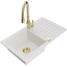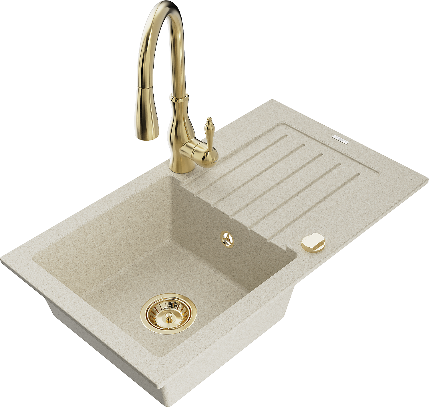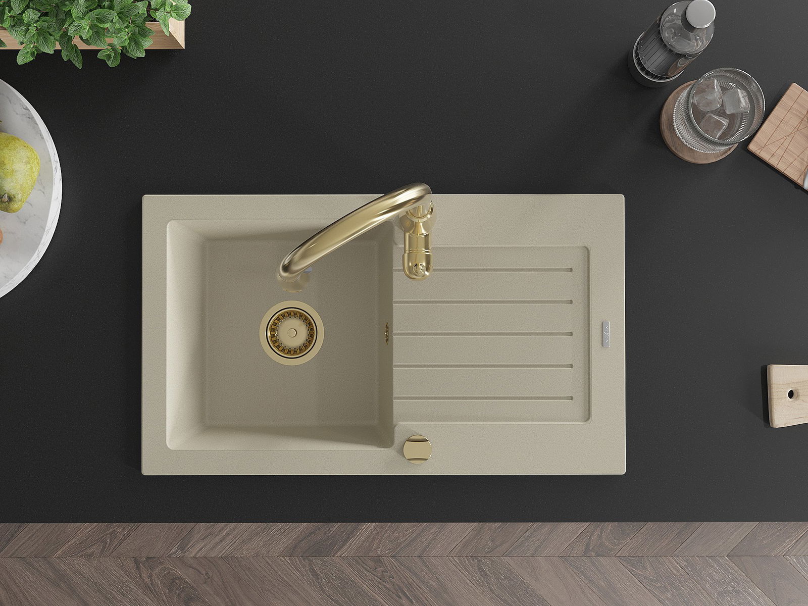 Mexen Pablo évier en granit à 1 bac avec égouttoir et robinet de cuisine Savita, beige - 6510-69-672601-50