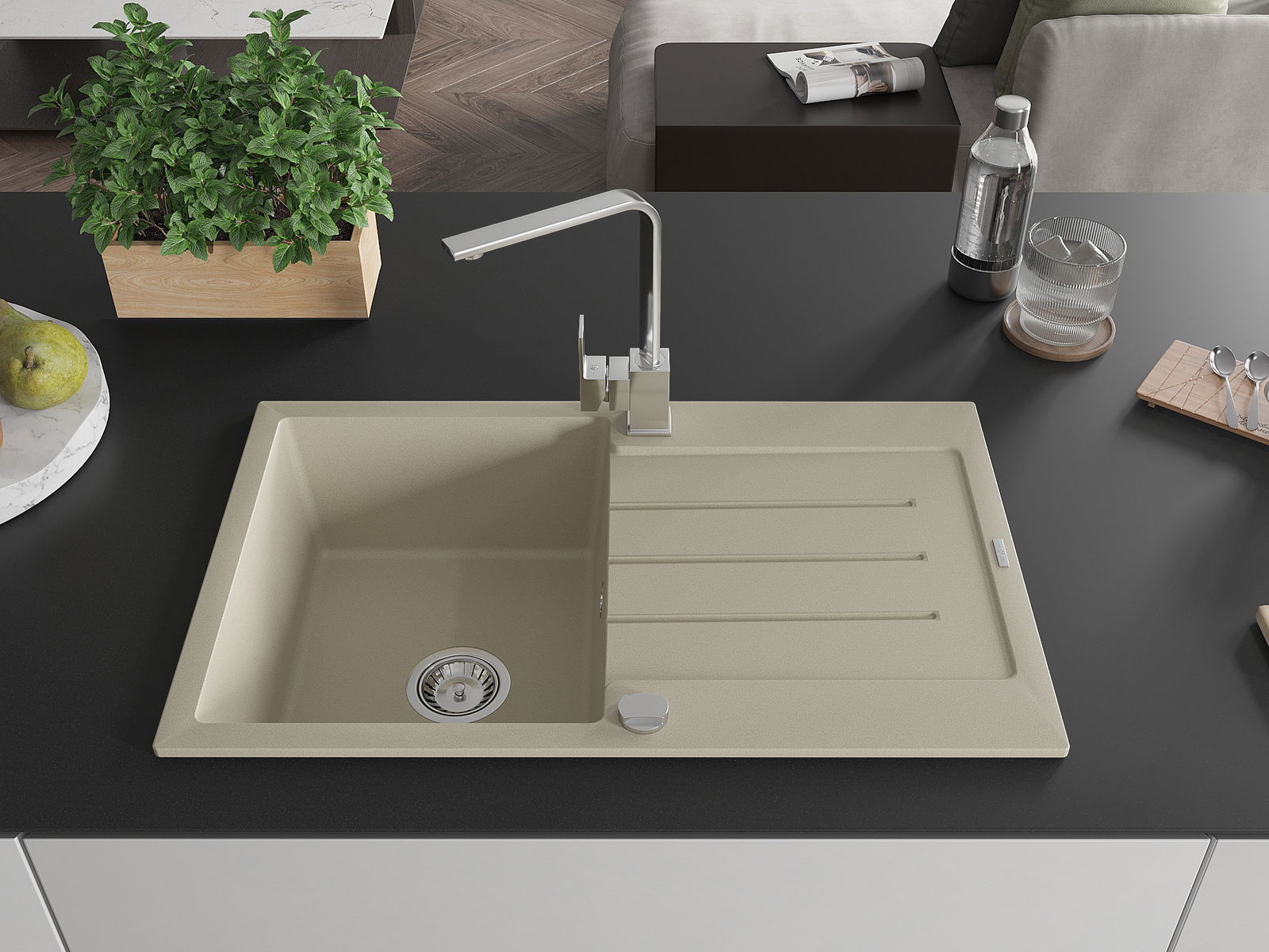 L'évier est fabriqué en granit de haute qualité. Il constitue un complément élégant et surtout pratique pour toute cuisine, quel que soit son style. La qualité et la durabilité du granit garantissent de nombreuses années d'utilisation.