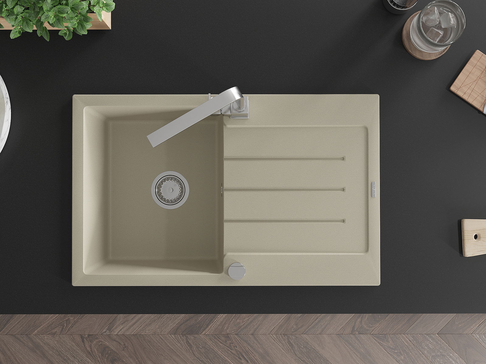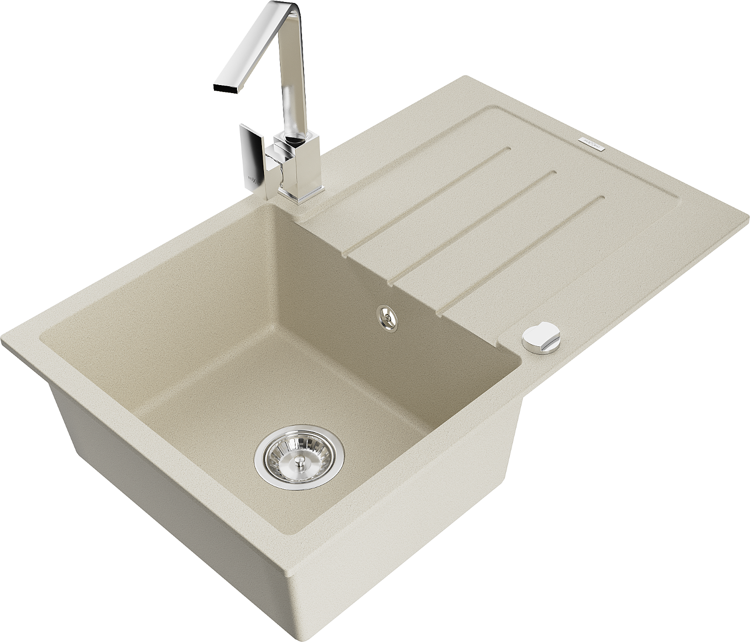 Mexen Bruno évier en granit 1 bac avec égouttoir et mitigeur de cuisine Rita, beige - 6513-69-670300-00