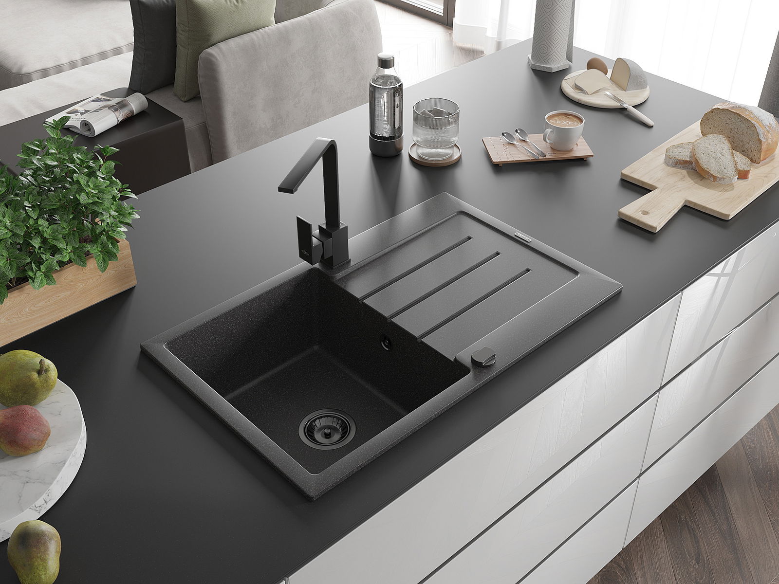 L'évier est fabriqué en granit de haute qualité. Il constitue un complément élégant et surtout pratique pour toute cuisine, quel que soit son style. La qualité et la durabilité du granit garantissent de nombreuses années d'utilisation.